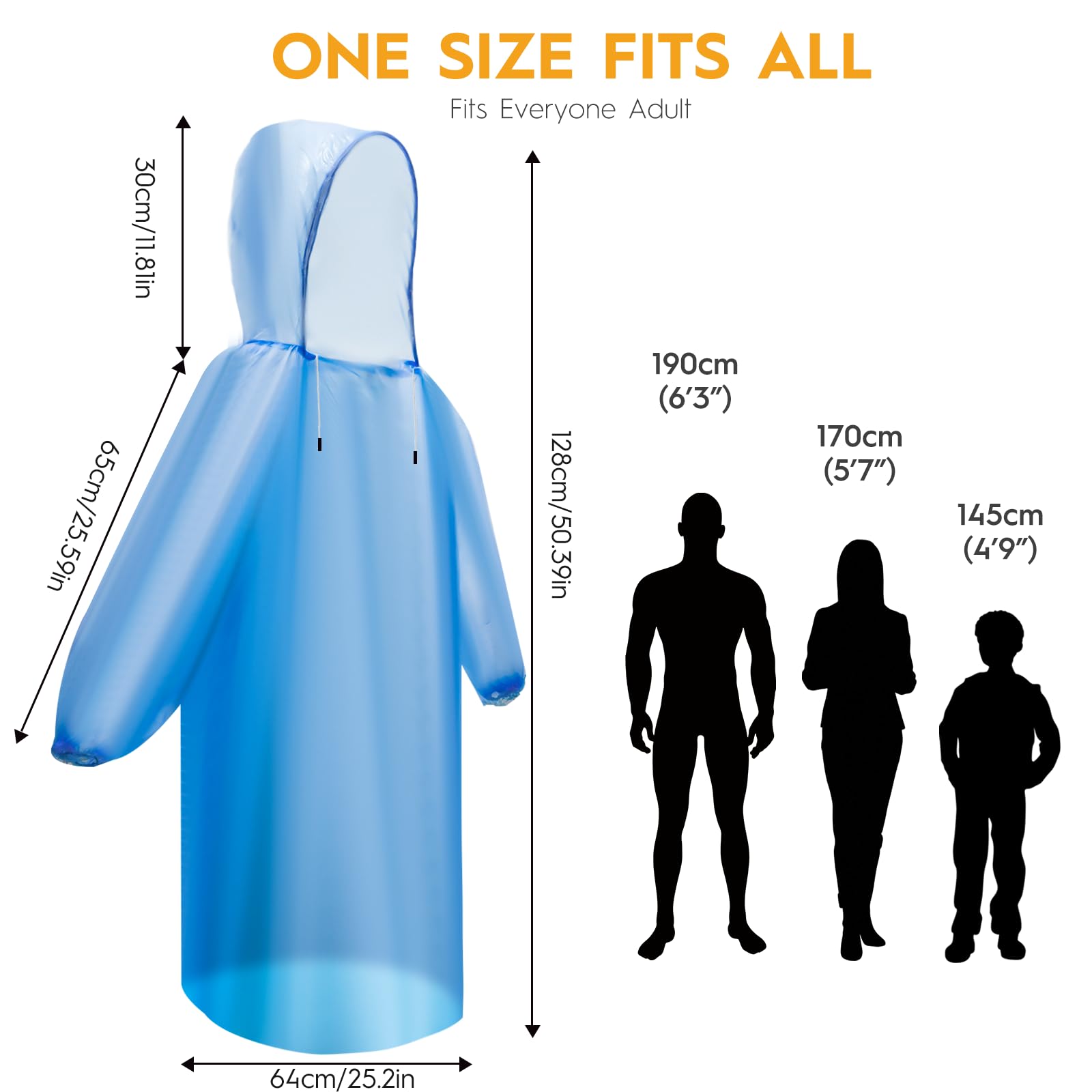 One-Size-Fits-Most Adults & Youth - Roomy design with 50.39" length and 25.2" waist circumference accommodates all body types, even over backpacks or jackets. Perfect for family camping trips or surprise rain during soccer games - everyone stays dry!