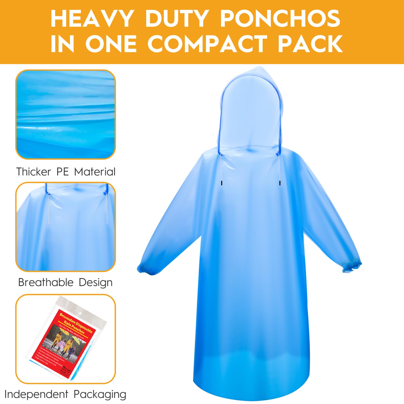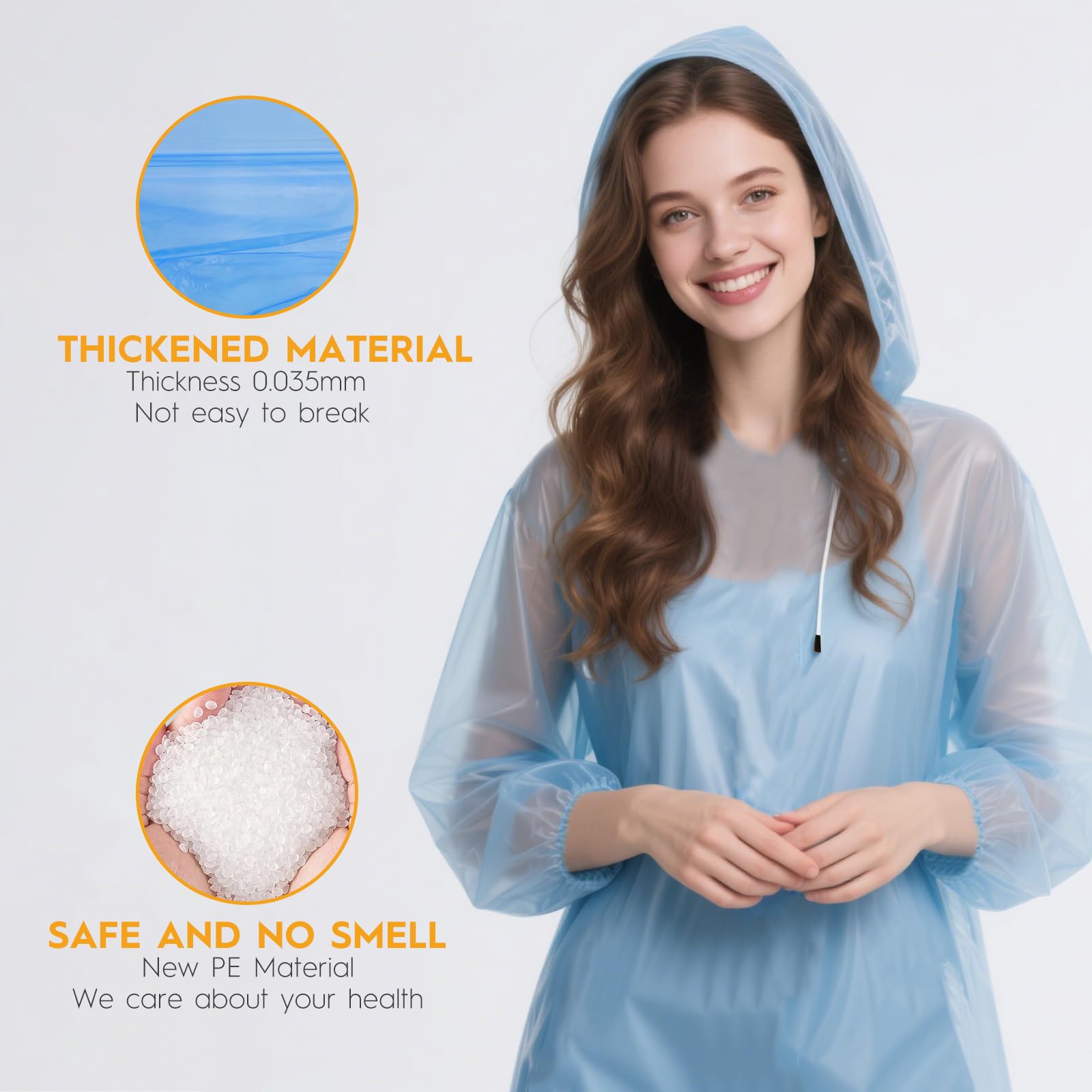 Premium 0.035mm PE Material & 100% Waterproof - Made from extra-thick, tear-resistant PE plastic, these ponchos withstand heavy rain and wind while keeping you dry. Feel confident during sudden storms at theme parks or while hiking with friends—no more soggy clothes!
