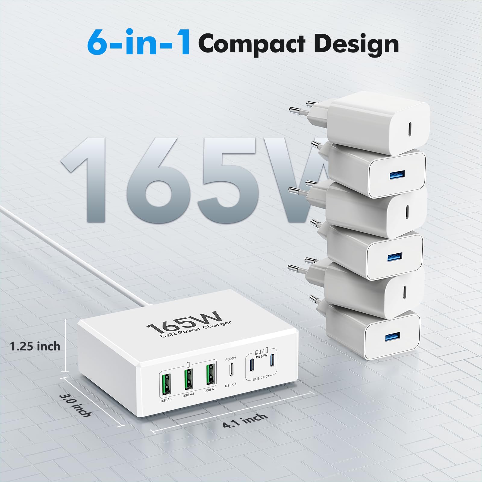 Fast Charging GaN Charger: The 165W GaN PD charger has higher energy efficiency and upgraded cooling system. The internal GaN chip design makes our cube block smaller and safer. The C-type charging block has built-in overcharge protection, overheat protection, short circuit protection, overcurrent protection, and overvoltage protection.