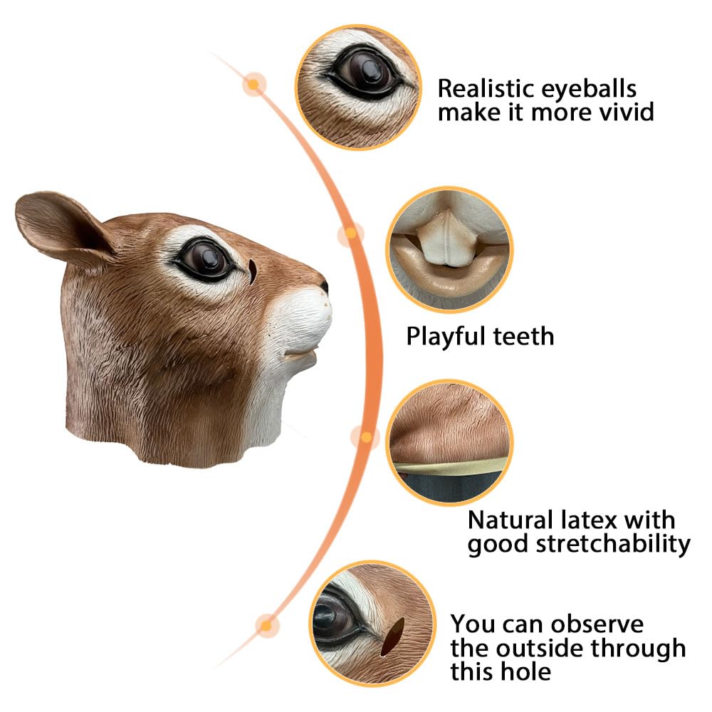 Handcrafted with meticulous attention to detail, our squirrel mask features lifelike fur texture, expressive eyes, and natural brown coloring for an authentic woodland creature appearance that's perfect for Halloween or costume parties.