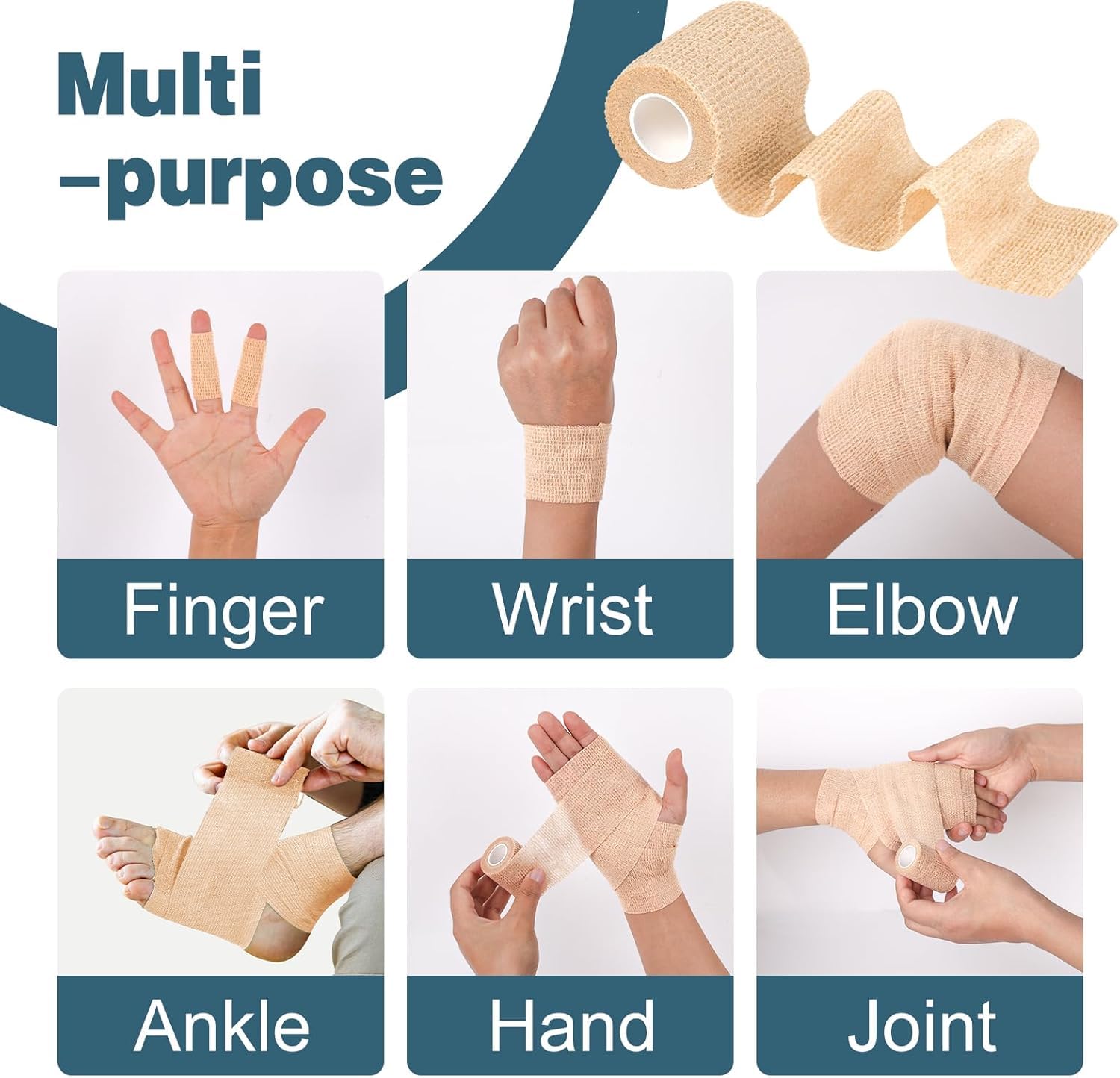Self Adhesive Bandage: Package includes 120 rolls of skin color self adhesive bandage wrap. Each roll measures 2 inch wide and 5 yards long after stretching. It easily adheres to itself but will not stick to other surfaces such as skin or hair, making it easy to pull off and change bandages