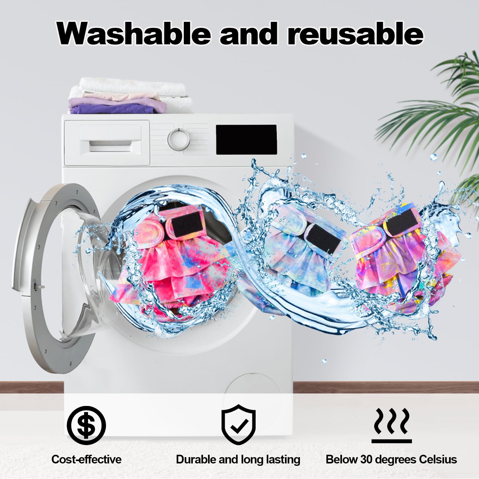 Durable and Frugal: The washable girl dog diapers are designed for durability with precision stitching to withstand daily use and frequent washing. The female dog diapers for peeing are machine washable at 30°C(Less than 86 Fahrenheit) or below, tumble dry, or air dry at low temperatures. No bleach, no softener.