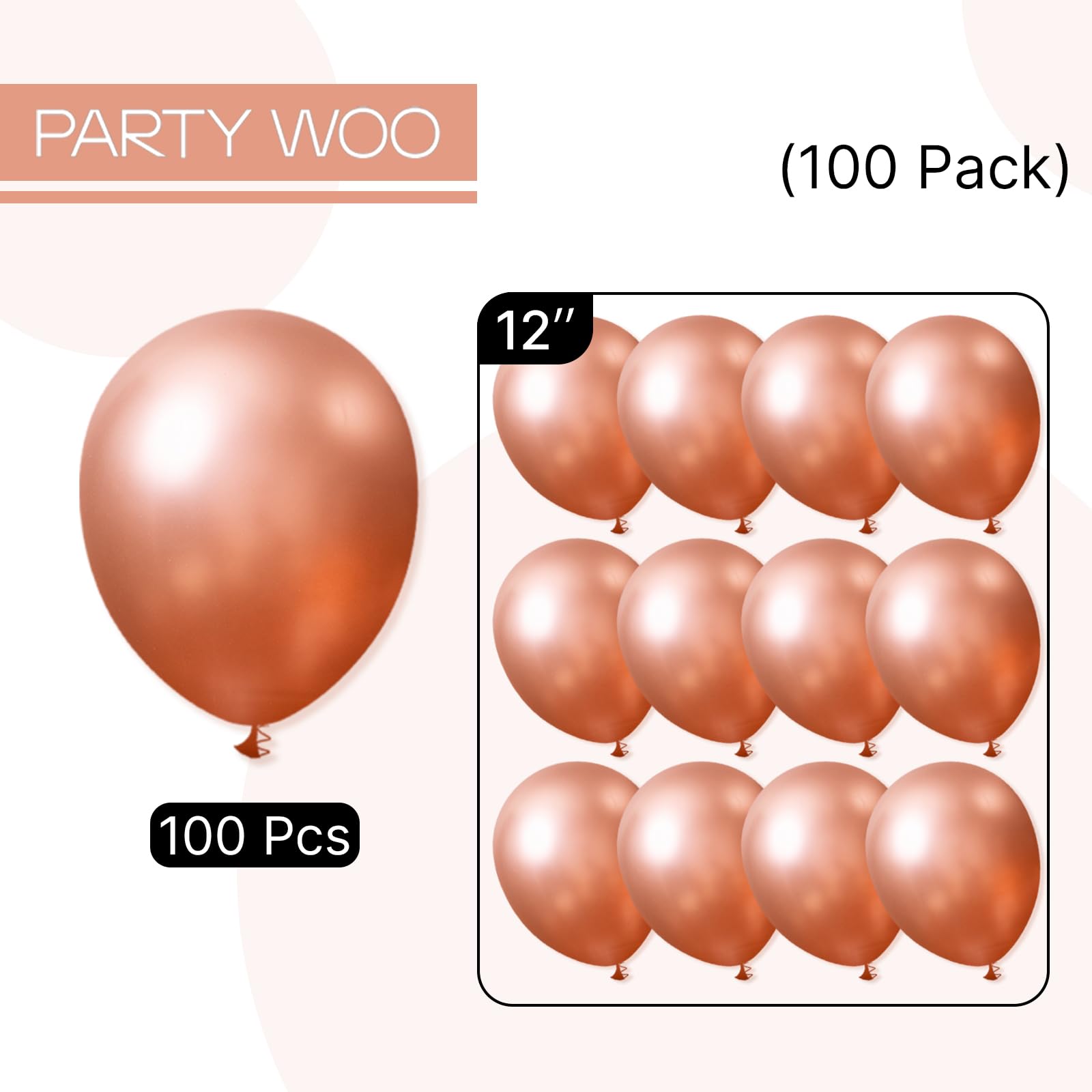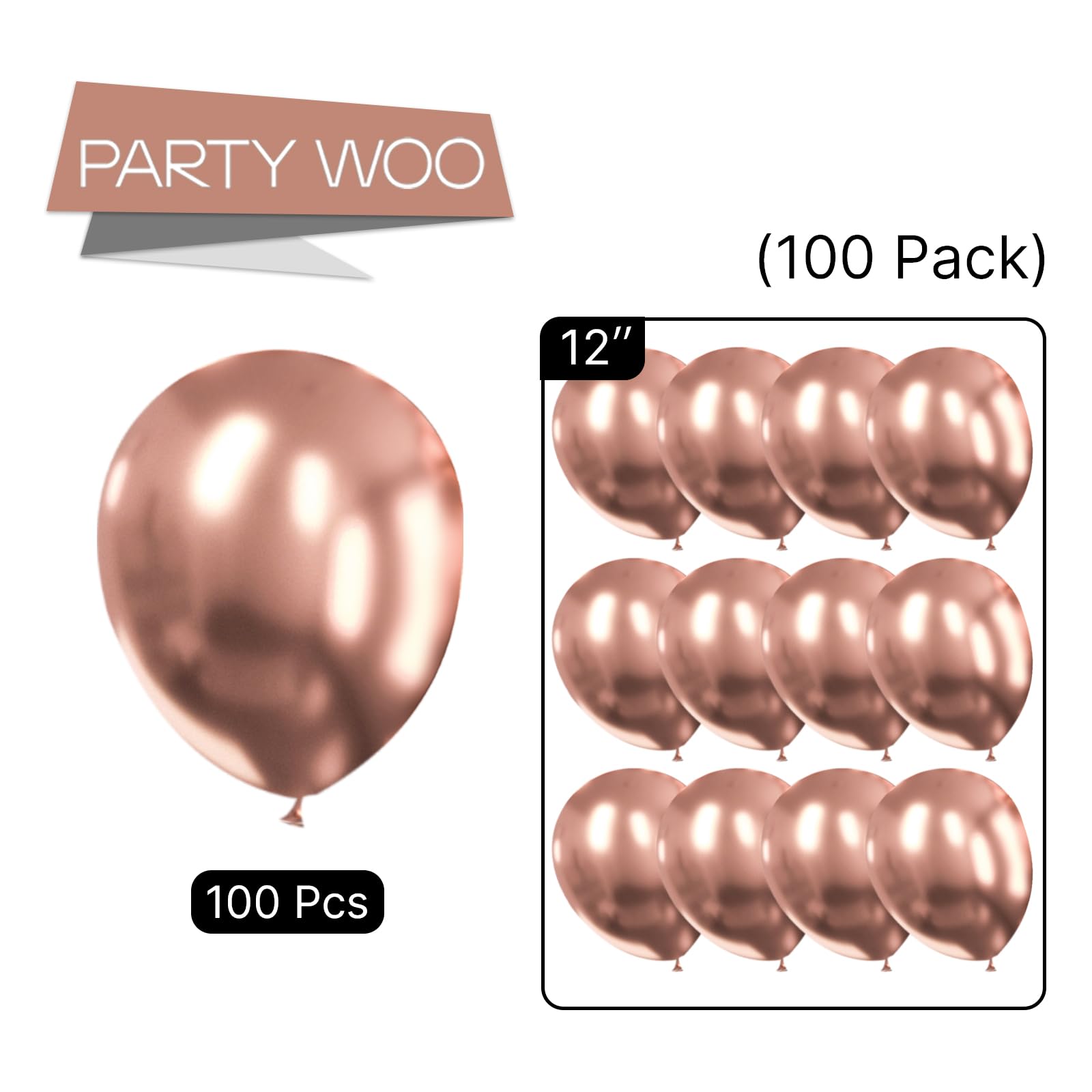 Package includes: 12 inch rose gold balloons (100pcs), in a solid consistent color that brings vibrant energy, can widely used in birthday decorations, wedding decorations, baby shower decorations, and adding a vibrant touch to make your party bright.