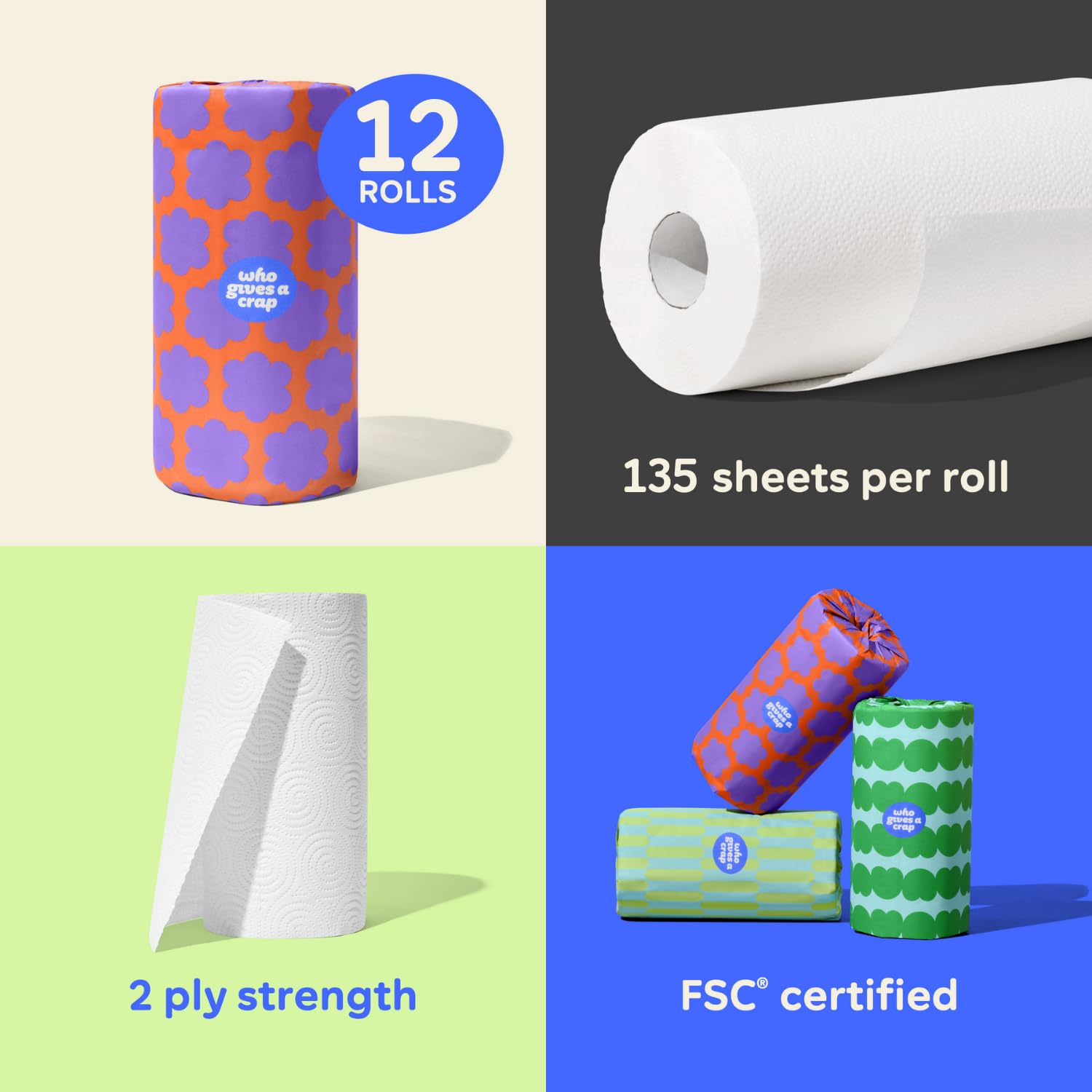 ABSORBENT AND STRONG 2-PLY DESIGN: Built to handle everything from kitchen spills to bathroom wipe-downs, these 2-ply recycled paper towels are tough, durable, and extra absorbent. That means you can soak up more with fewer sheets, saving rolls (and saving waste).