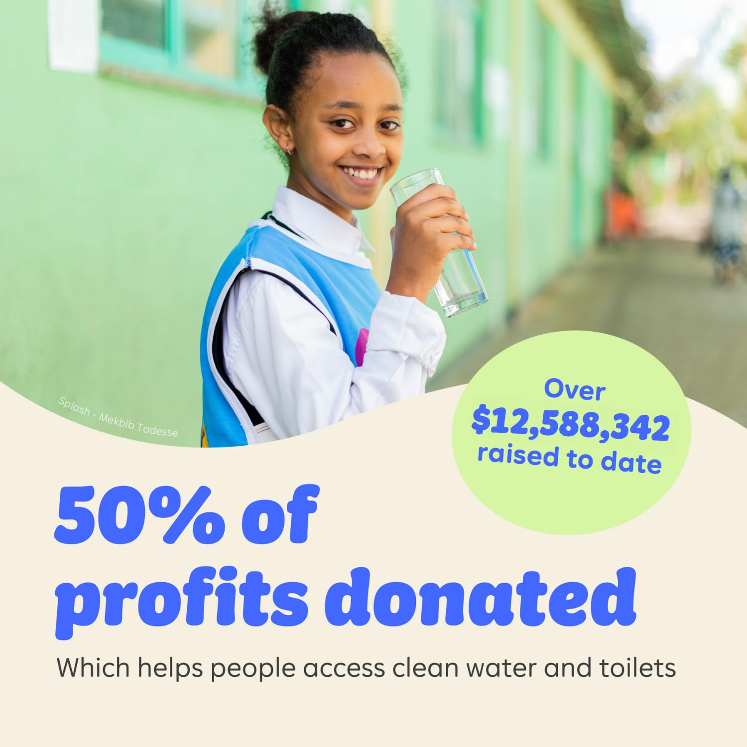 50% OF PROFITS DONATED: Every purchase helps fund clean water and sanitation projects around the globe. Half of profits go directly to organizations working to improve access to these life-changing resources, so wiping up spills also supports people in need. Nice!