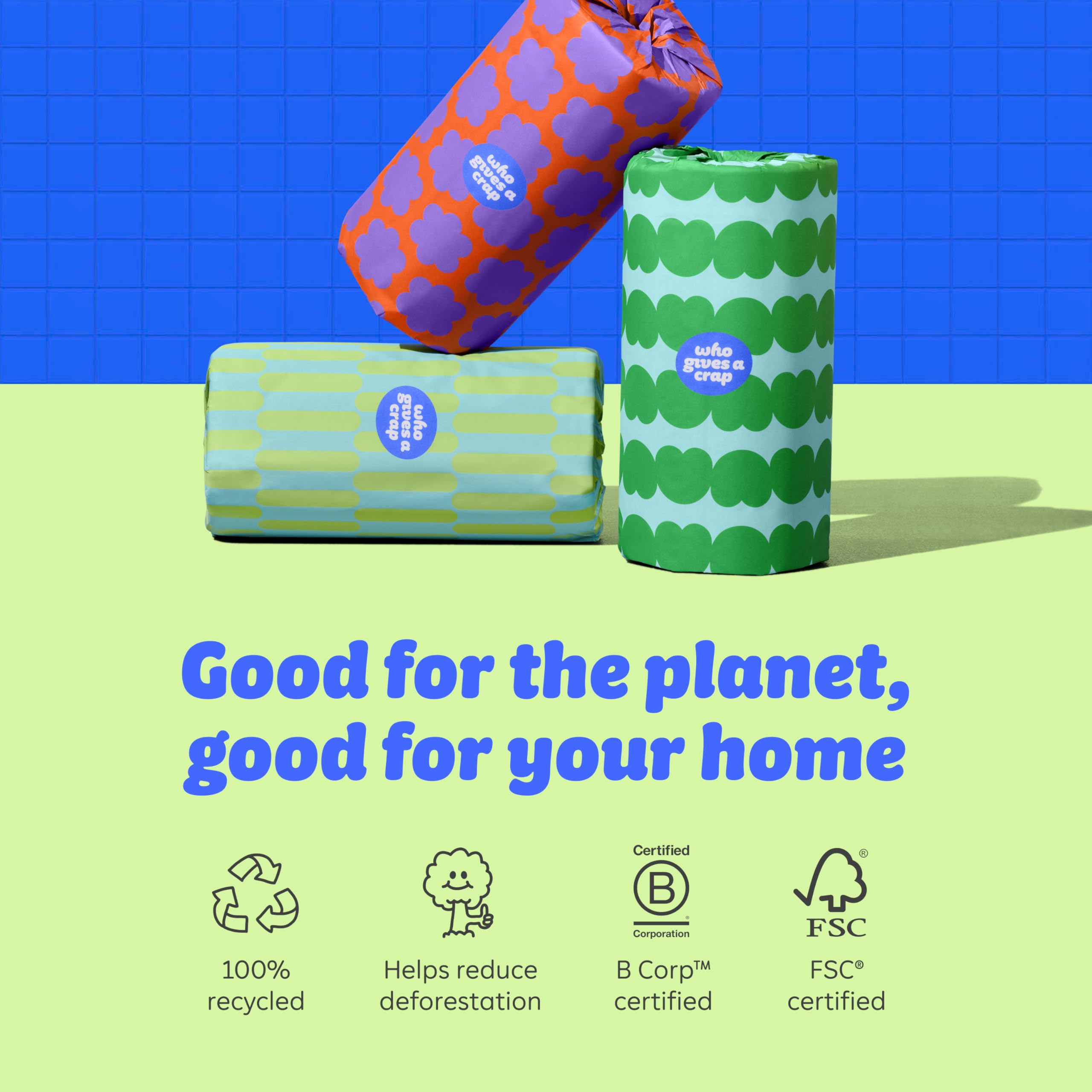SUSTAINABLE AND RESPONSIBLE: Wrapped in 100% recycled paper instead of plastic, these rolls are designed with the planet in mind. FSC certified and B Corp certified, they meet strict standards for sustainability and social impact—proof that clean-ups can be good for the world too.