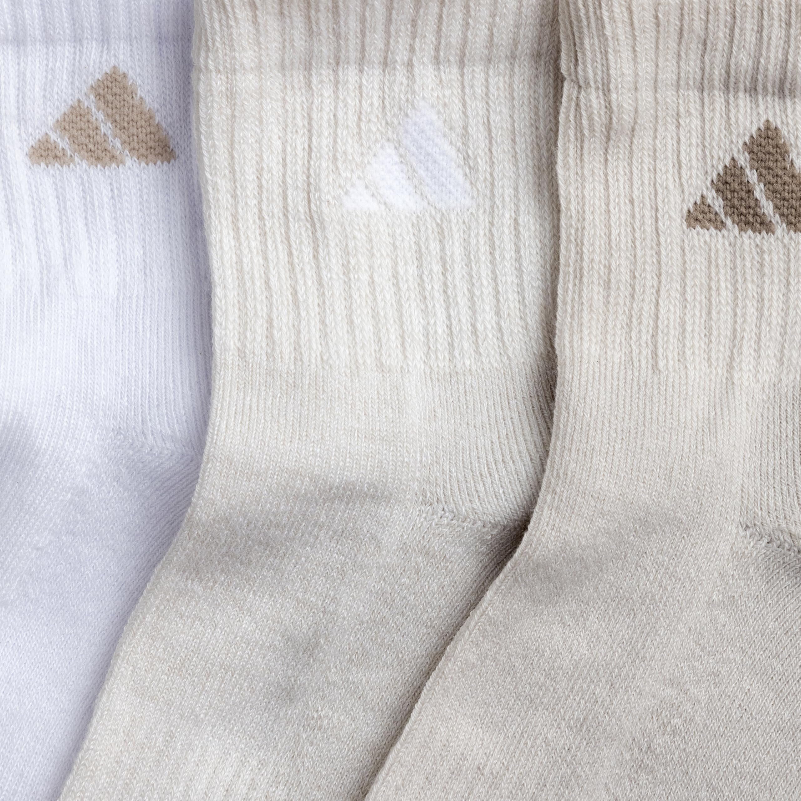 Description Quality, comfort, and durability is what you are looking for in your everyday sock and the adidas 6-pack delivers on all of your needs. now, with the addition of arch compression, this sock delivers a secure fit and gives you the best sock to handle your day to day.