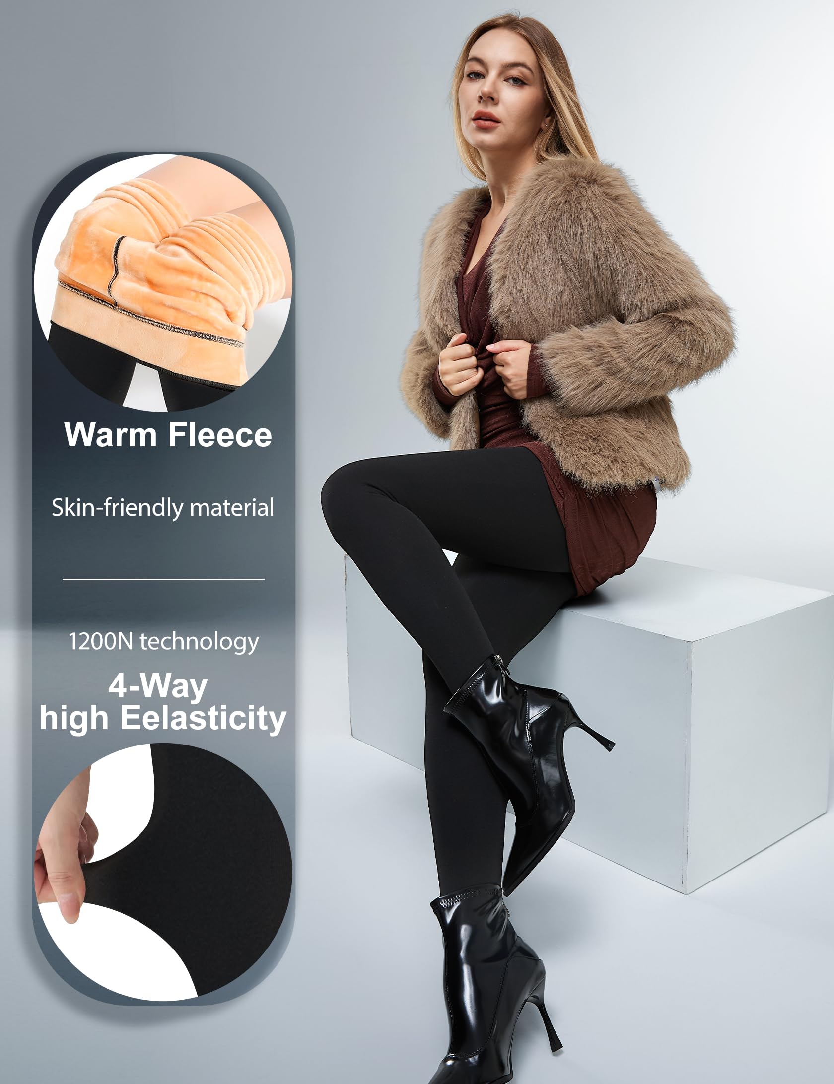 【250G WARM FLEECE INNER】: 250g thick tights come with the super warm fleece lining, keep you super warm in cold weather without being bulky. Warm tights are made of skin-friendly material, soft to the touch, not harmful to your skin, no deformation, no fading, no pilling. Real warm high content cashmere to keep your body warm and prevent heat loss. Warm your whole winter