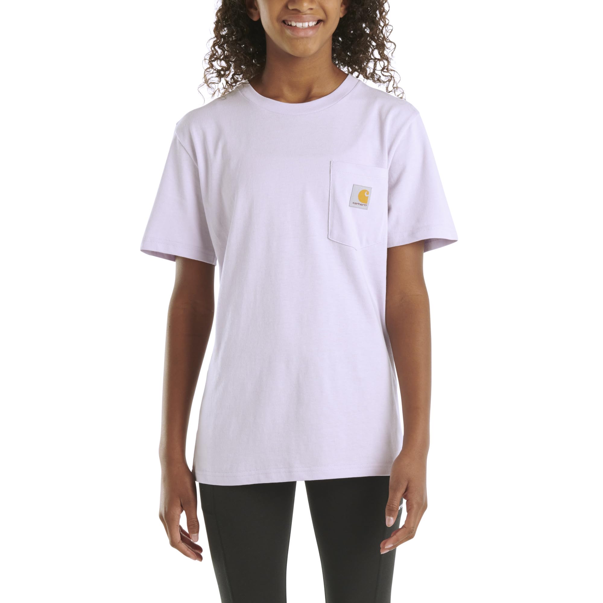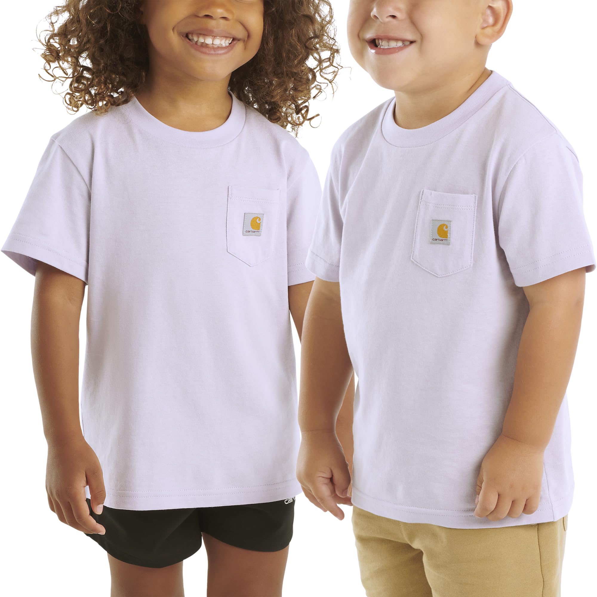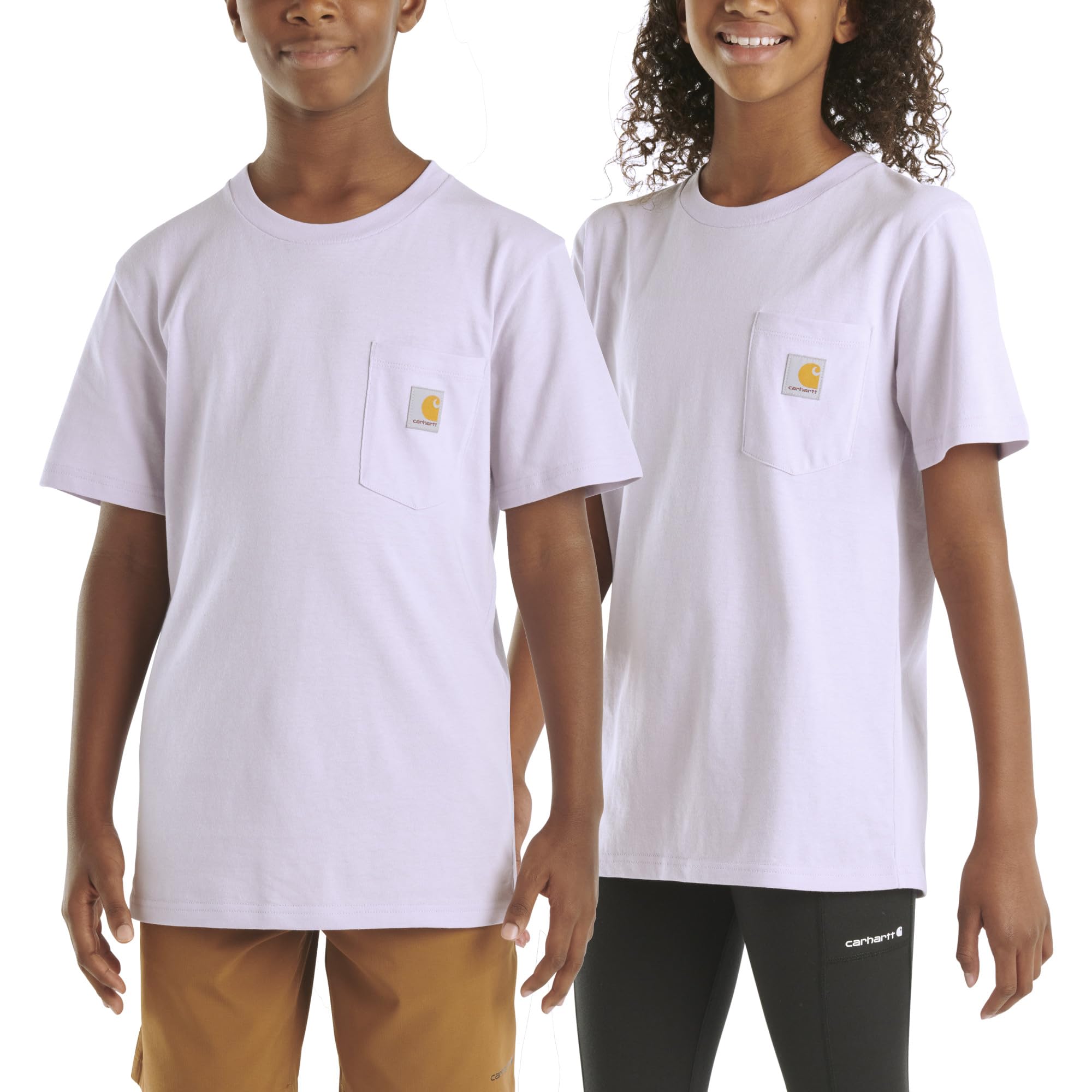 Description Fun-size Carhartt with full-size durability. This kids’ Re-Engineered Garment Dye Pocket T-Shirt is made from 5.3-ounce, 100% cotton jersey that feels soft from the start but stands up to whatever the day brings. Side-seam construction helps reduce twisting, keeping the fit comfortable and the shape consistent. A rib-knit crewneck slips on easily, and the classic left-chest pocket with a sewn-on Carhartt label completes the signature look. The perfect everyday tee for kids who play hard — built with the strength you expect from Carhartt.