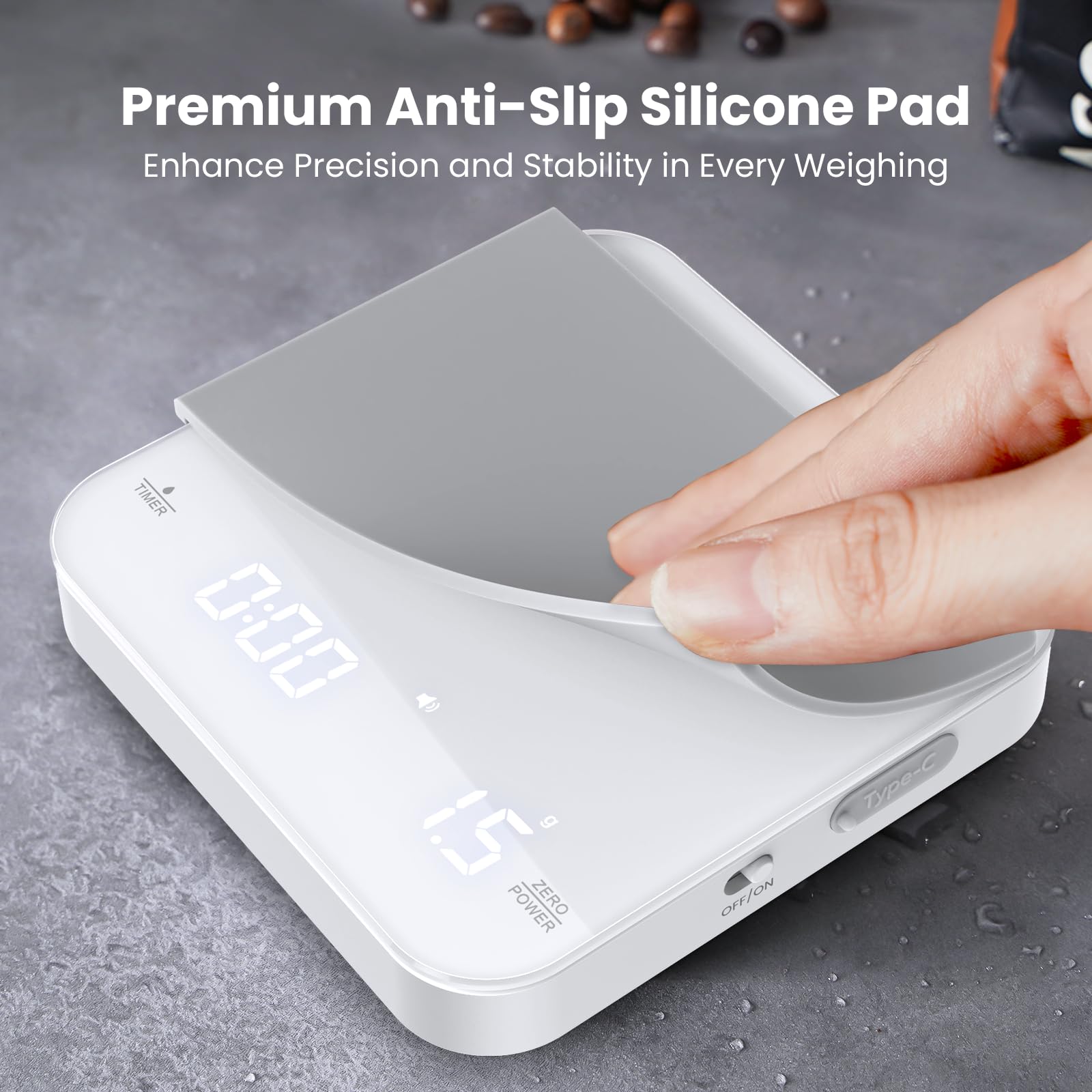 【Silent Brewing】Experience a tranquil coffee morning with our coffee scale's Mute Function. Press and hold the TIMER and ZERO buttons for approximately 2 seconds to deactivate the beeping sound, allowing you to enjoy a peaceful start to your day