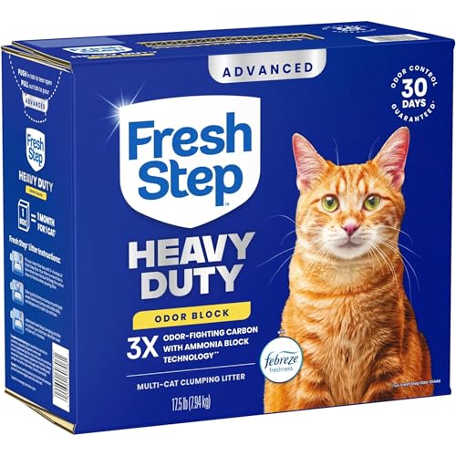 CLUMPING LITTER: One 17.5-lb. box of Fresh Step Advanced Heavy Duty Clumping Litter With Febreze Freshness, featuring 3X odor-eliminating carbon (1) for Fresh Step's longest odor-fighting formula (3)