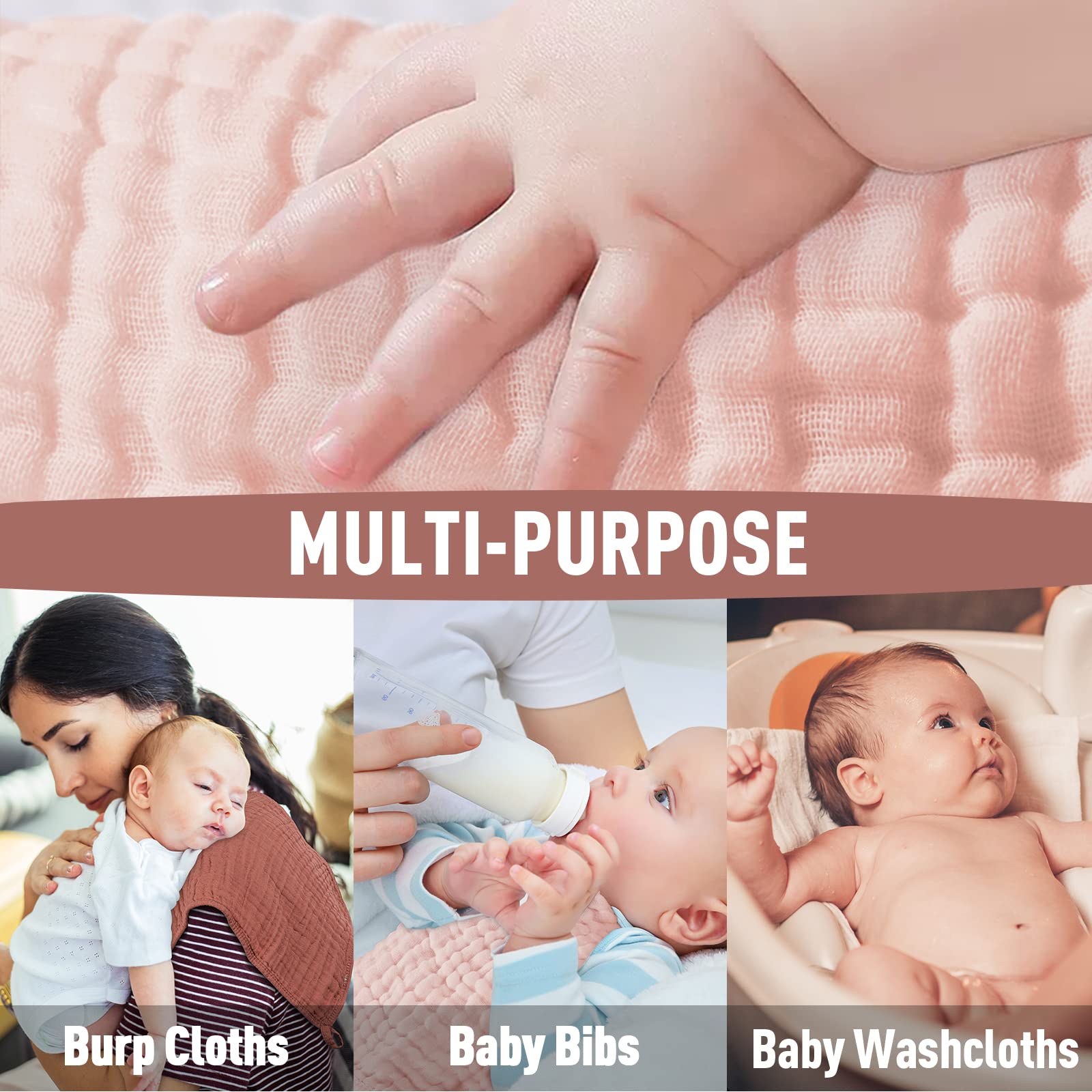 WIDE APPLICATIONS: The baby muslin cloths can be applied as burp rags, baby bibs, baby washcloths and towels, baby wipes or cloth diapers, a must-have for burping, teething or spitting up!