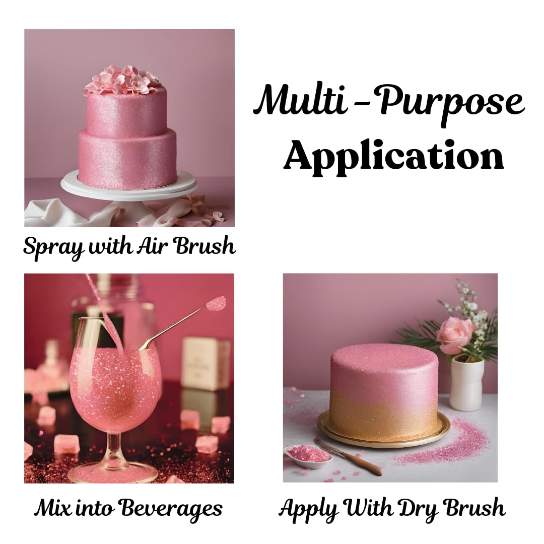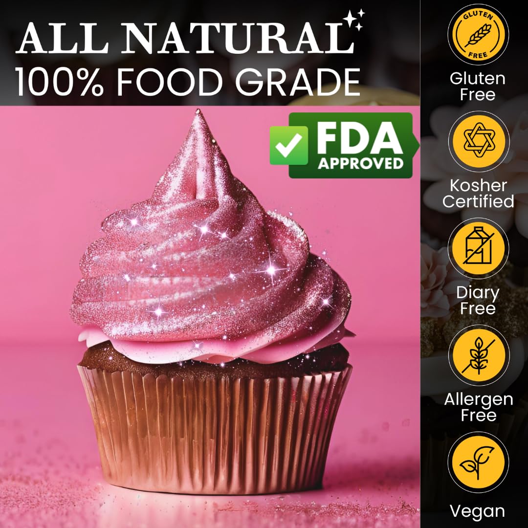 100% FOOD GRADE: Pink Luster Dust Edible Unlike edible cake decorations, food glitters, meringue powder, and luster powders, drink glitters our edible Glitter luster dust Silver edible decorative powder is made only with good quality food colorings without added sugars or flavors