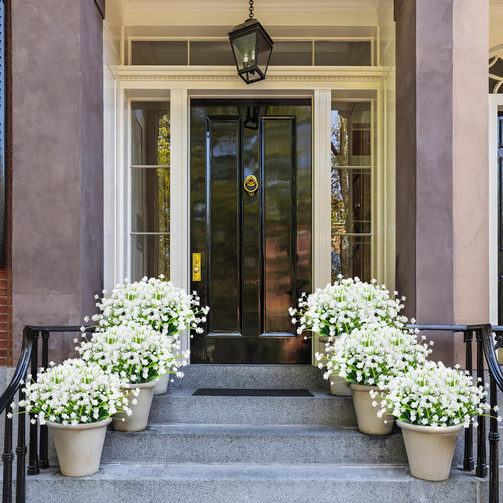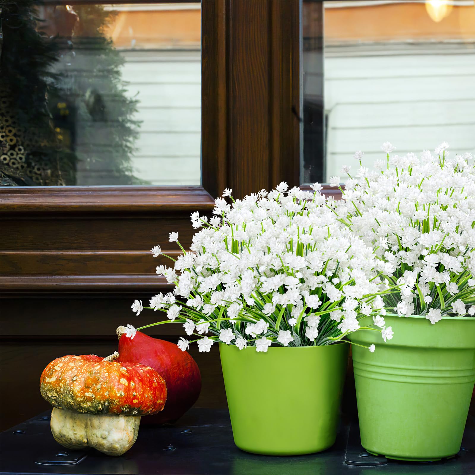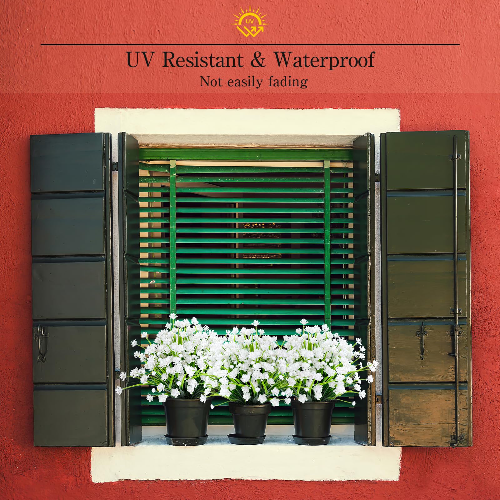 Perfect for Outdoor/Indoor - Plastic flowers are ideal for outdoor porches,walkway,terraces windox box,front yard,pots,hanging planters,gardens,landscape,windowsills,allow you have beautiful color all year around.Also suit for birthdays,weddings,memorial place or grave,they can live anywhere and have withstood heavy rain storms and winds