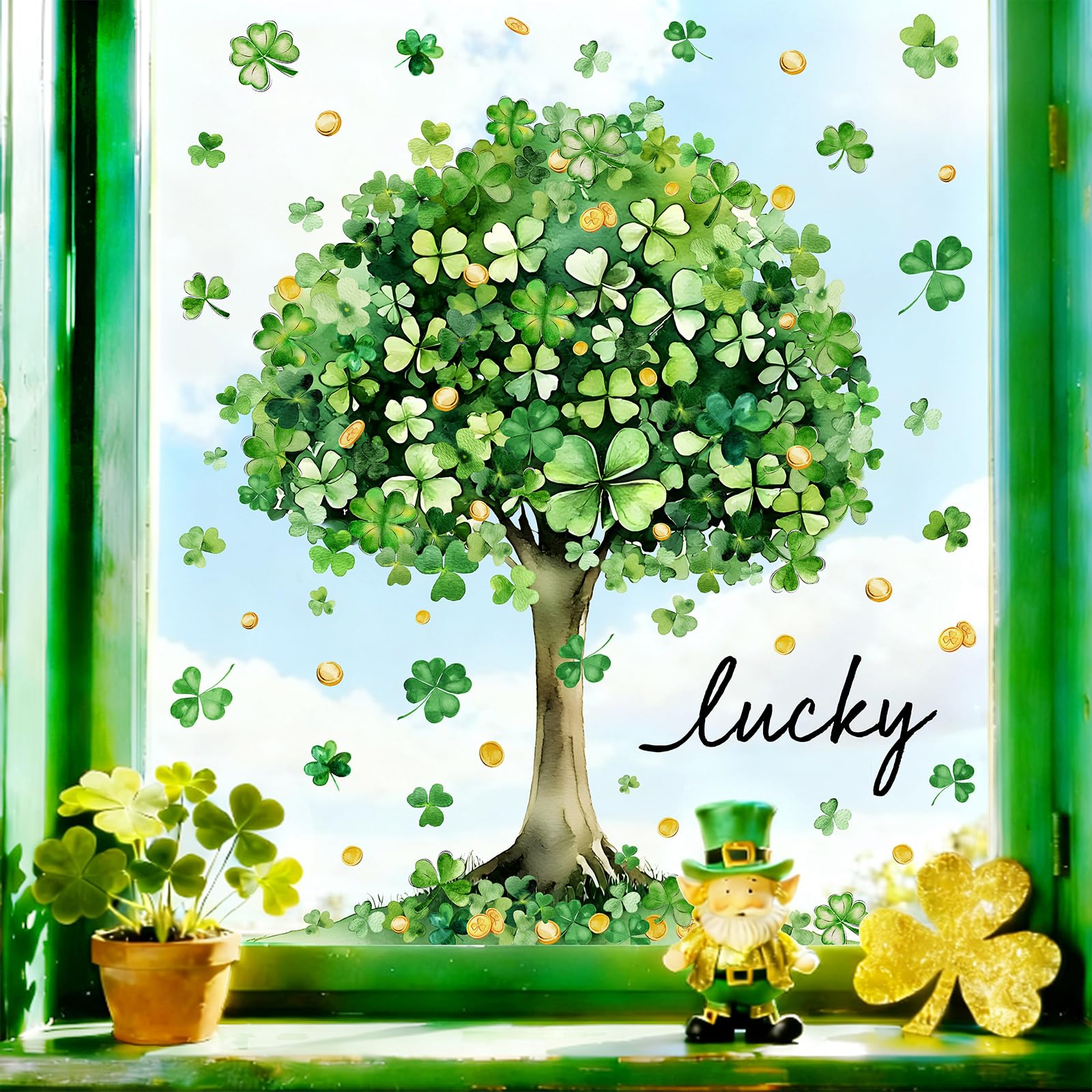 St. Patrick’s Day Theme: Our window clings match the theme of St.Patrick’s Day, the window clings design mainly revolves a large clover tree, and decorated with corresponding holiday elements, including falling shamrock, gold coins, horseshoe, etc., take a watercolor style, full of spring breath
