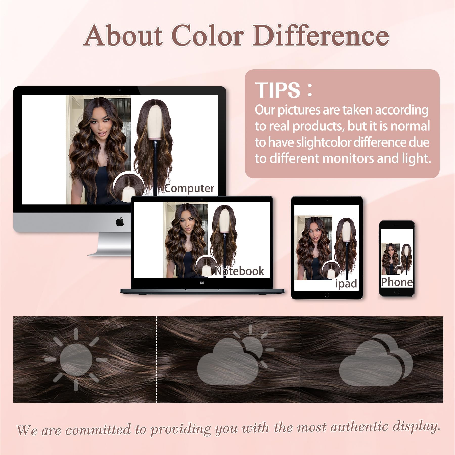 【Kind Tips】:All wigs will shed slightly especially when you wear them for the first time, which is normal. Colors may vary slightly depending on your personal computer or cellphone monitor settings. We do try our best to accurately represent colors on all of our products.