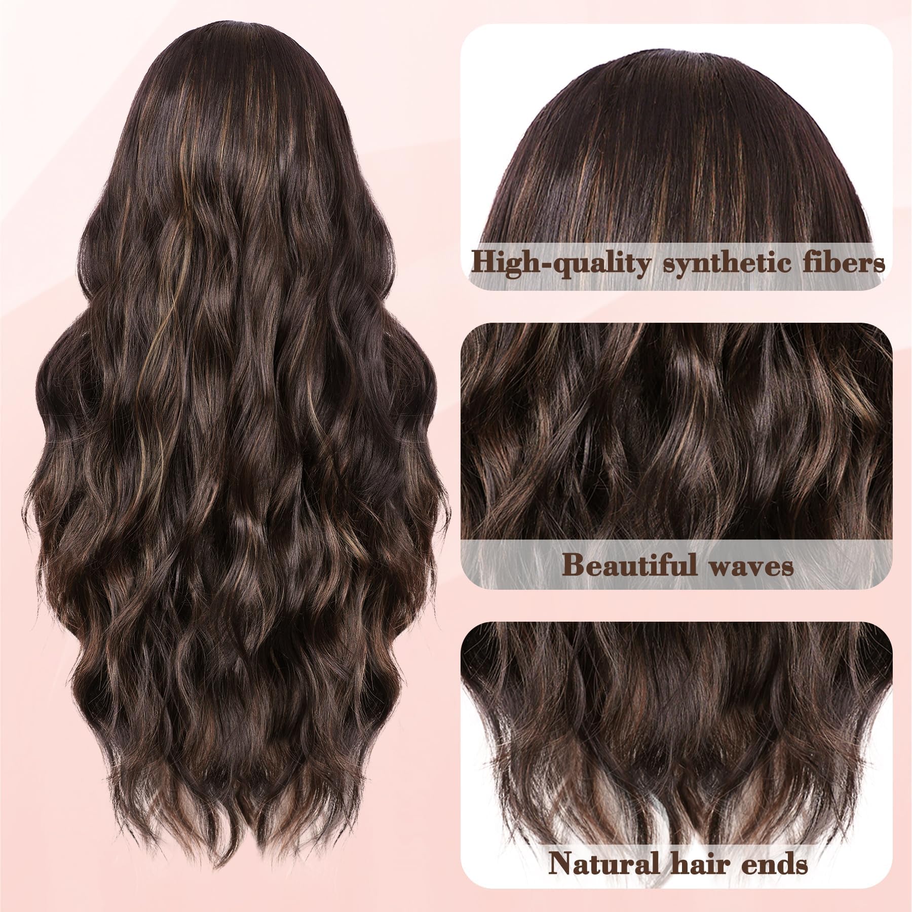 【Adjustable & Breathable Wig Cap】:This Long Wavy Wig’s Average Size (21 inch -22.5 inch). Two elastic straps in the cap, and you can adjust the straps according to your head. The breathable rose net cap makes you feel comfortable when you wear it. Easy to Install, Easy to take off, Saving You More Time.