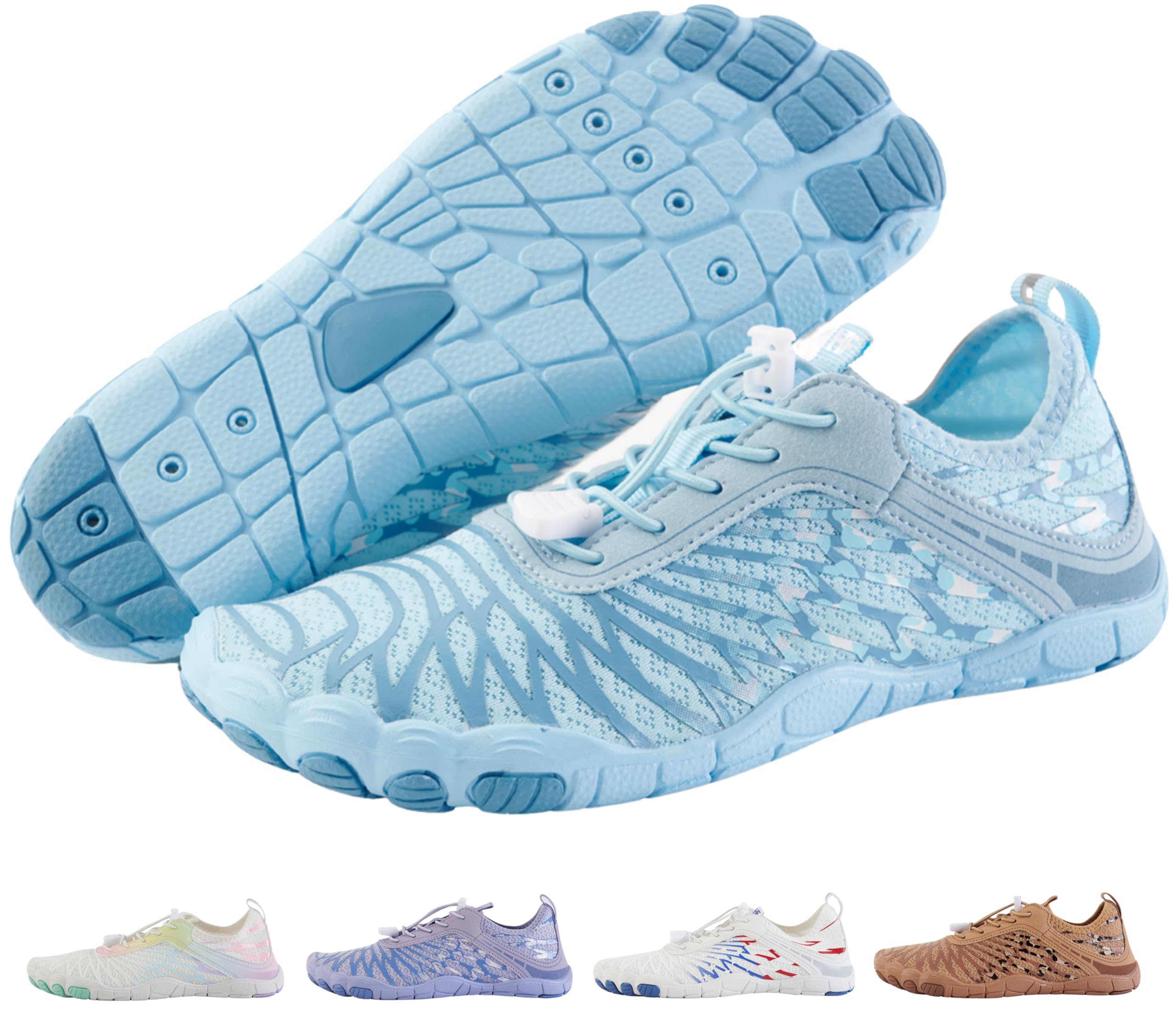 Wide Toe Box - Compared to the traditional trail running shoes, this women's barefoot shoe has a wider toe box design, which allows your toes to move and spread freely, promoting foot strength and flexibility. And this barefoot shoes has upgrade elastic drawstring allows you to quickly adjust the tightness of shoes and avoid the annoyance of tying your shoes.