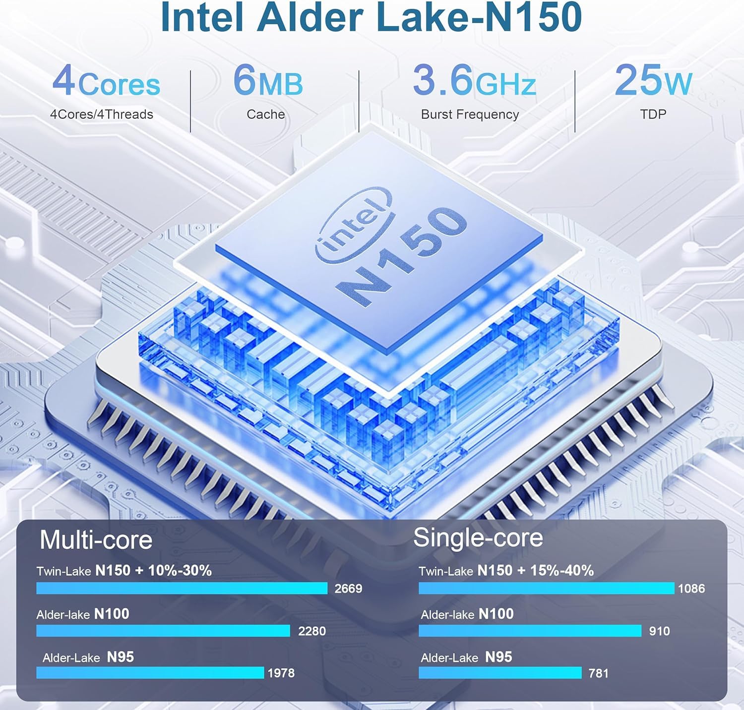 【Beelink New Mini S13 Pro Mini PC】Beelink Mini Pc comes with 13th Gen Intel Twin Lake N150 Processor(4C/4T, 6M Cache, up to 3.6GHz) and Intel UHD Graphics 24EUs 1000MHz, MAX TDP 25W. The performance improved 10% compare to the N100. Perfect for handle streaming, photo editing, office work tasks or use as a NAS and soft router