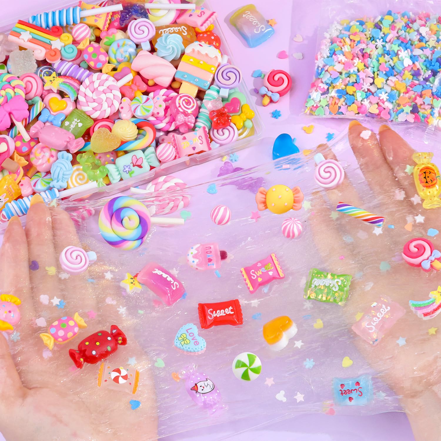 SUFFICIENT QUANTITY -- Each pack contains 120 pcs cute slime charms that feature a delightful variety of designs, perfect for adding a whimsical touch to your funny activities like slime,junk case,etc. These charms bulk can meet your crafting needs