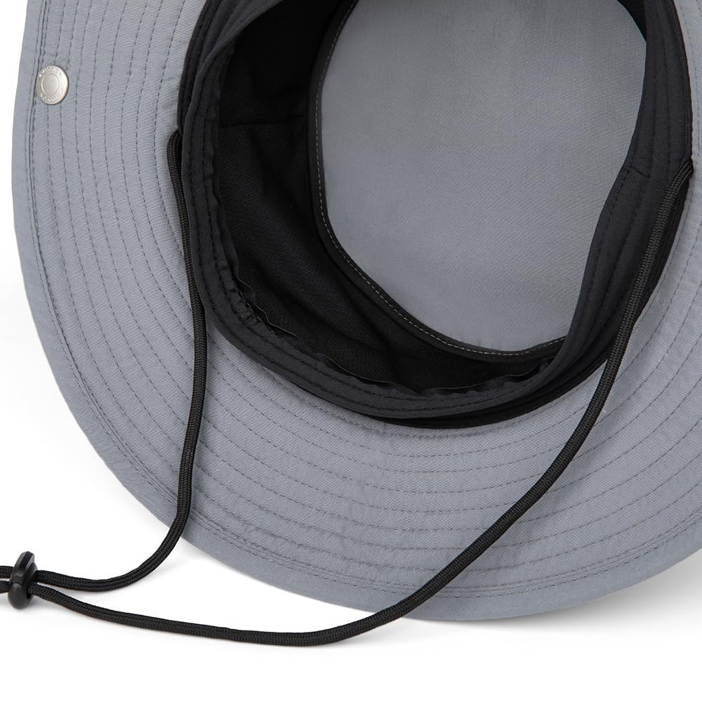 PERFORMANCE FEATURES - Lightweight and breathable, this flip-up, wide-brim hat with pin snaps provides UPF 50 sun protection & a chemical-free band for cooling and sweat management. Plus, it includes an adjustable drawcord for a secure, perfect fit.