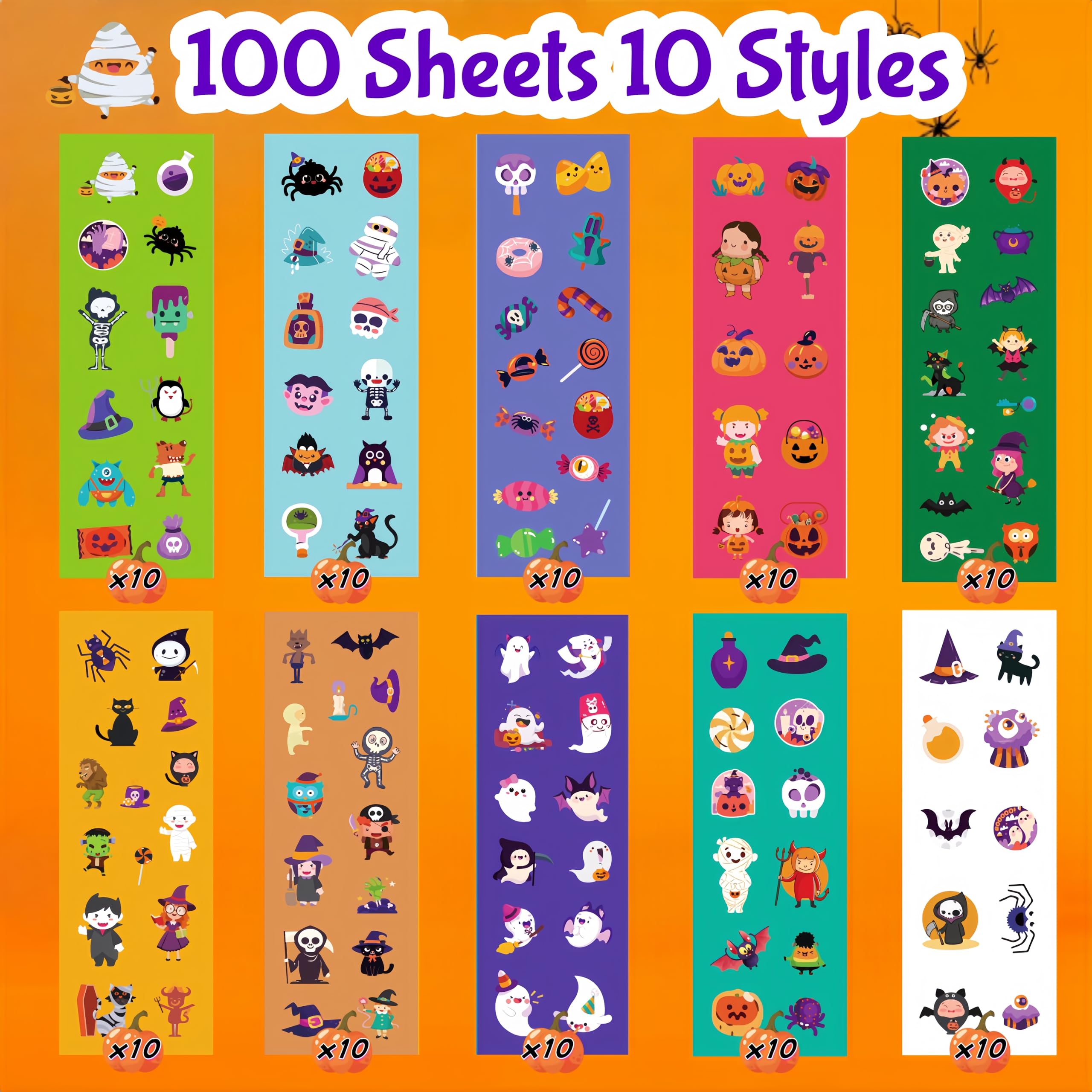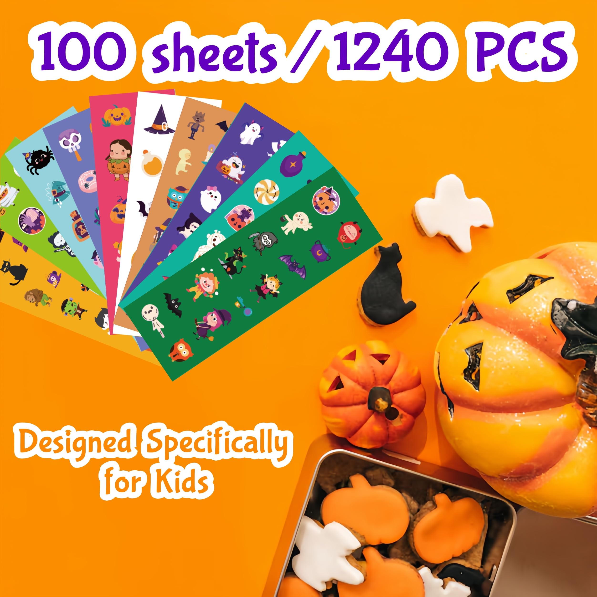 Cute 100 Sheets Halloween Stickers:Each package includes 1240 pcs cute Halloween stickers with different design styles. Each style has different shapes and cute designs. A vast number of Halloween stickers can bring unprecedented joy.