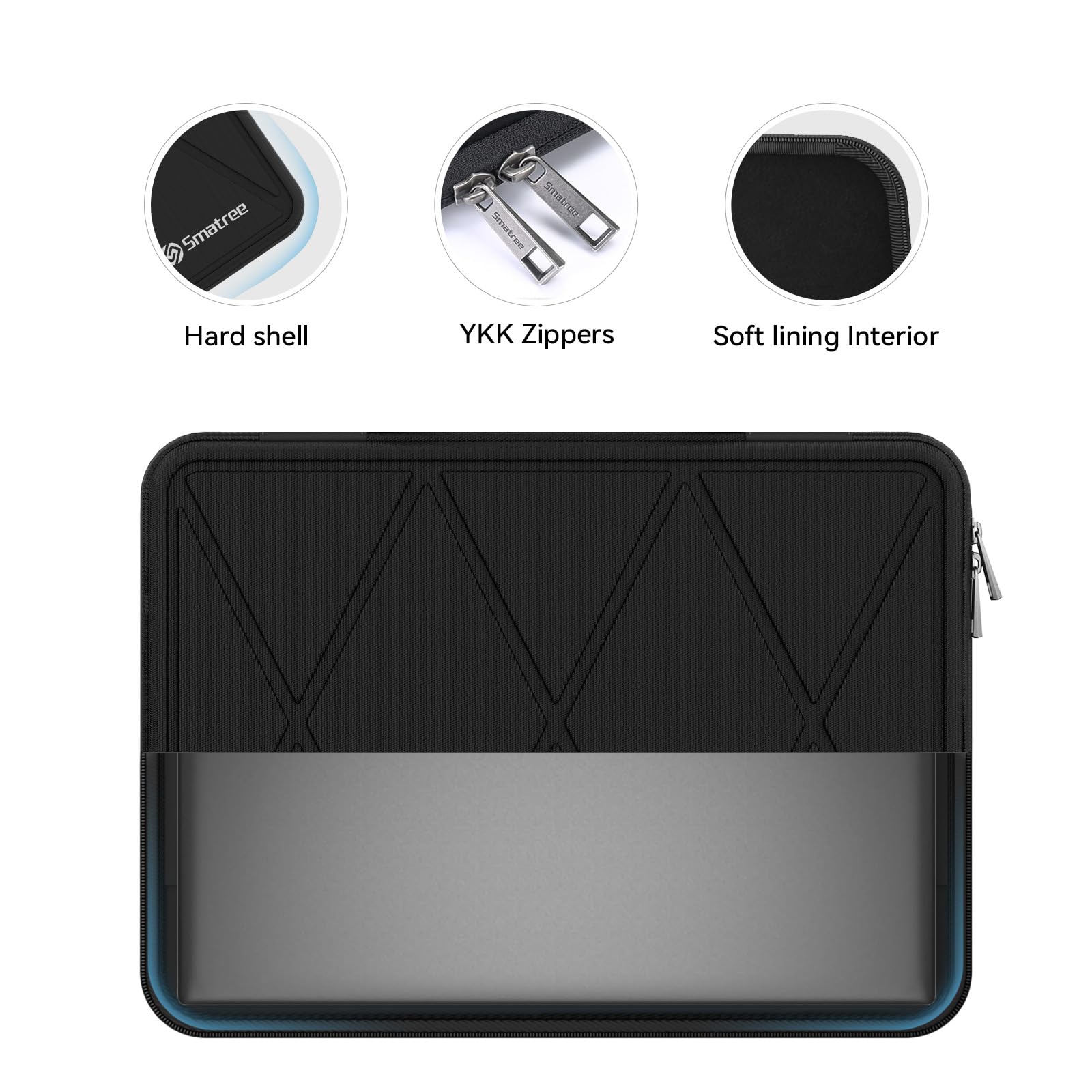 【Anti-Shock & Waterproof】EVA hard sleeve and features internal upgraded shock resistant padding layer, protect your laptop from inadvertent collision and accidental scratches when put in backpack or suitcase. The Smatree sleeve is made of durable 1600d nylon, it obstructs water effectively. Don't worry about splashing water, washable when laptop sleeve case becomes dirty.