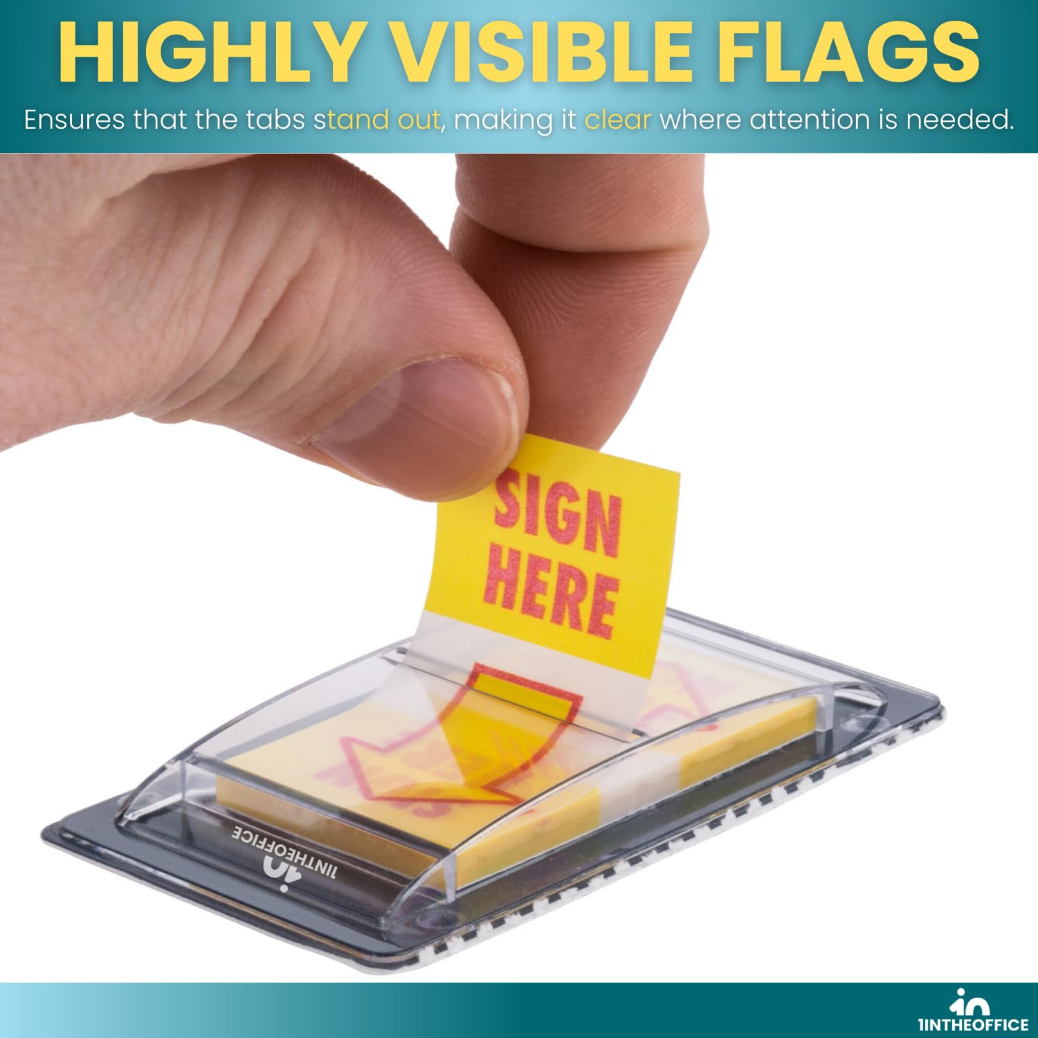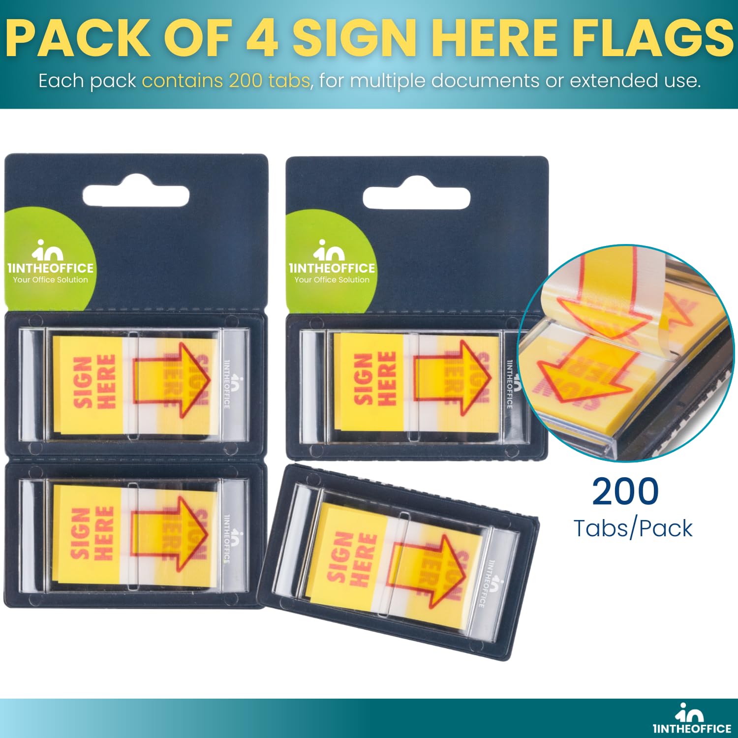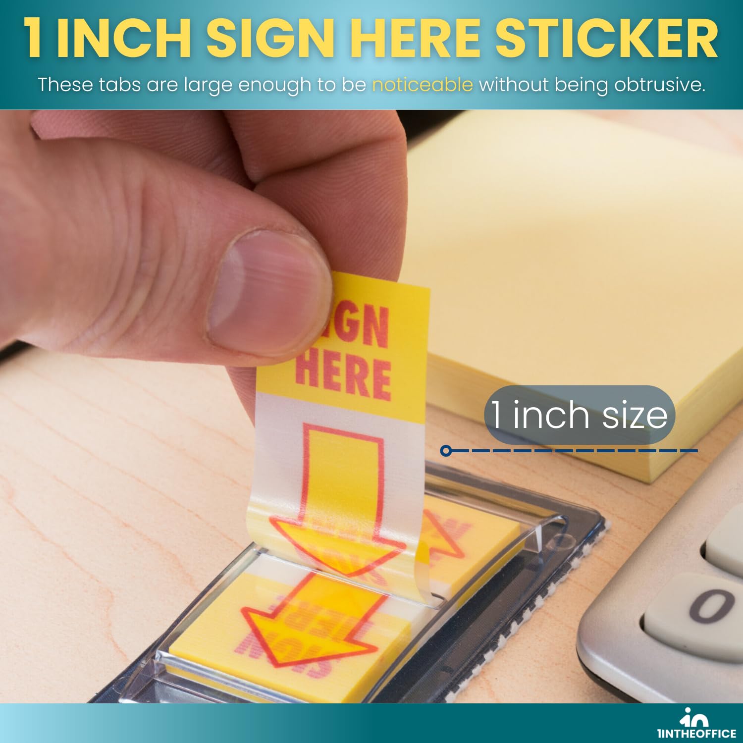 Bright, easy-to-spot "Sign here" arrow flags feature eye-catching, bold print that indicates what needs to be done.