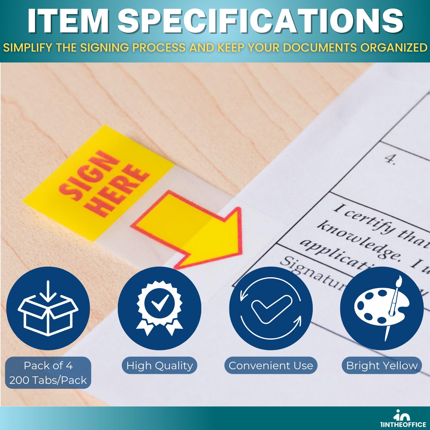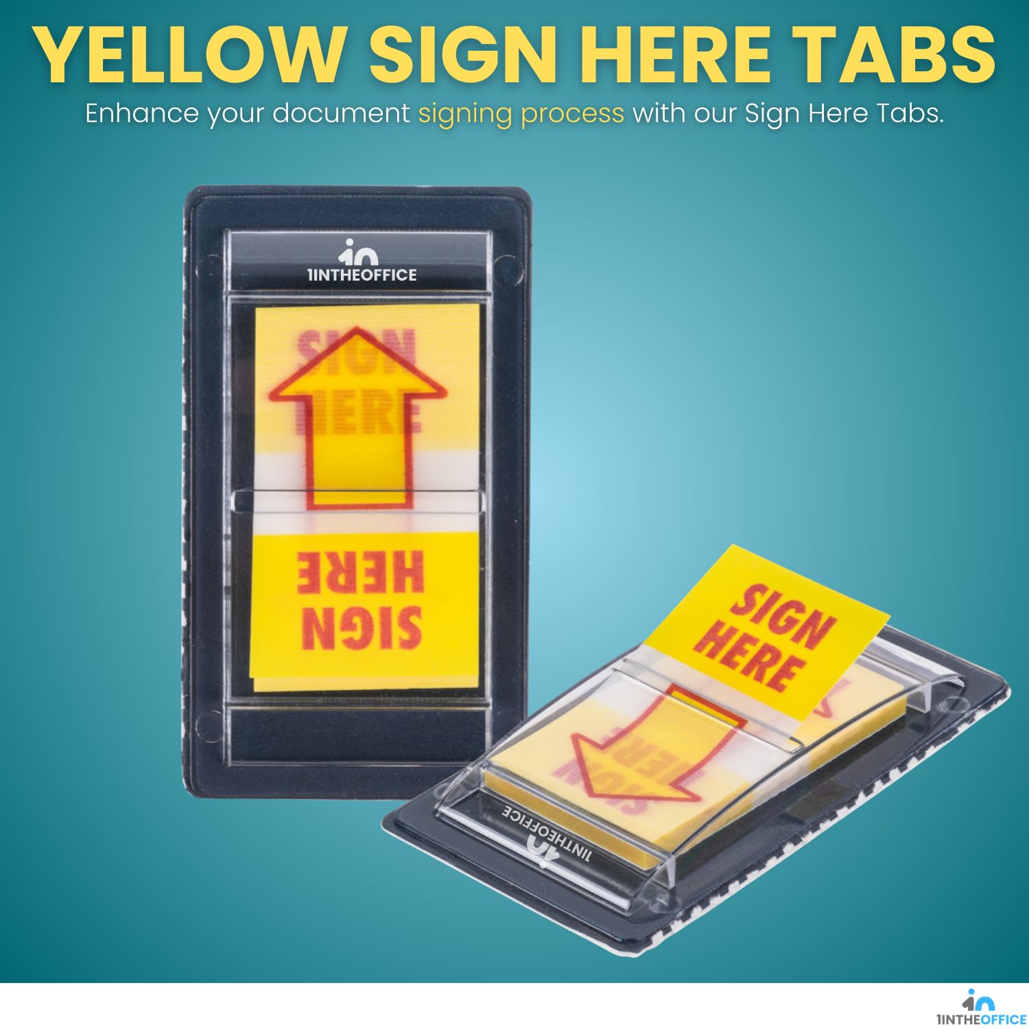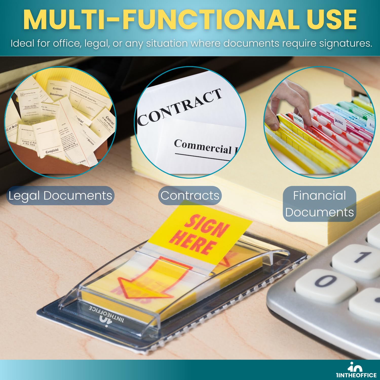 Bright, easy-to-spot "Sign here" arrow flags feature eye-catching, bold print that indicates what needs to be done.