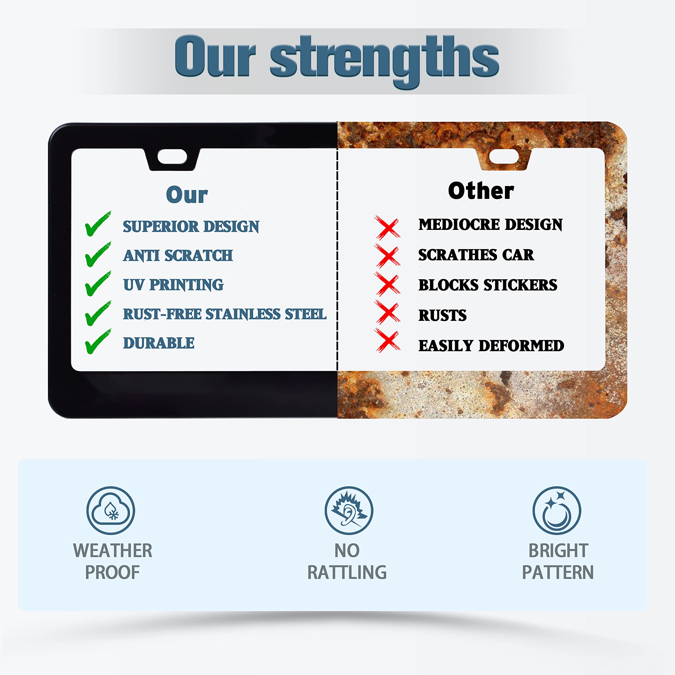 Inner clip on the back: The license plate frame has an inner clip on the back that can be fixed to the license plate without making any noise, so you can use it with confidence.
