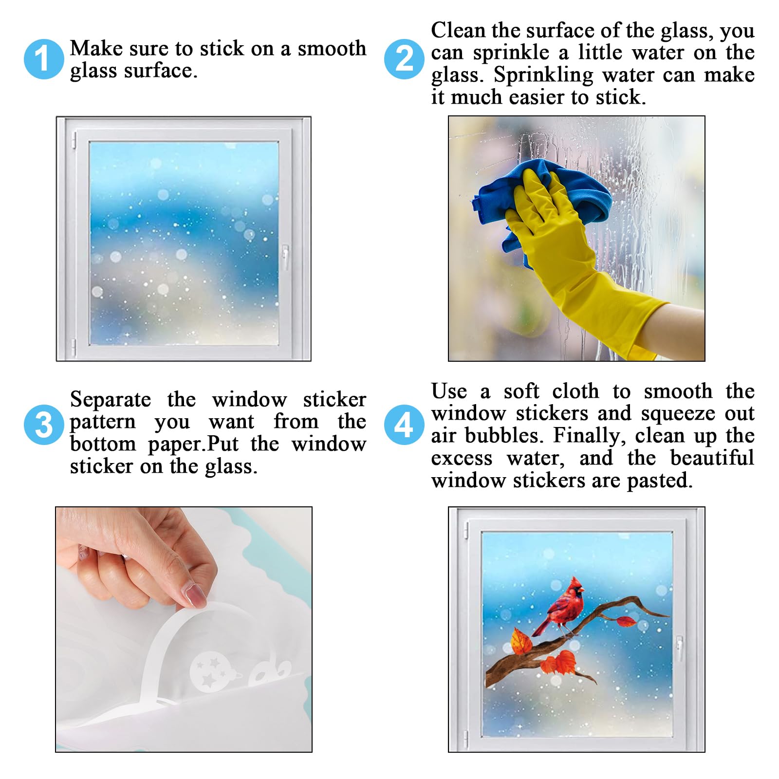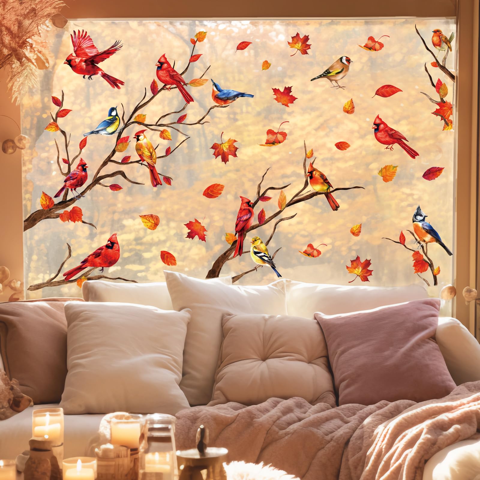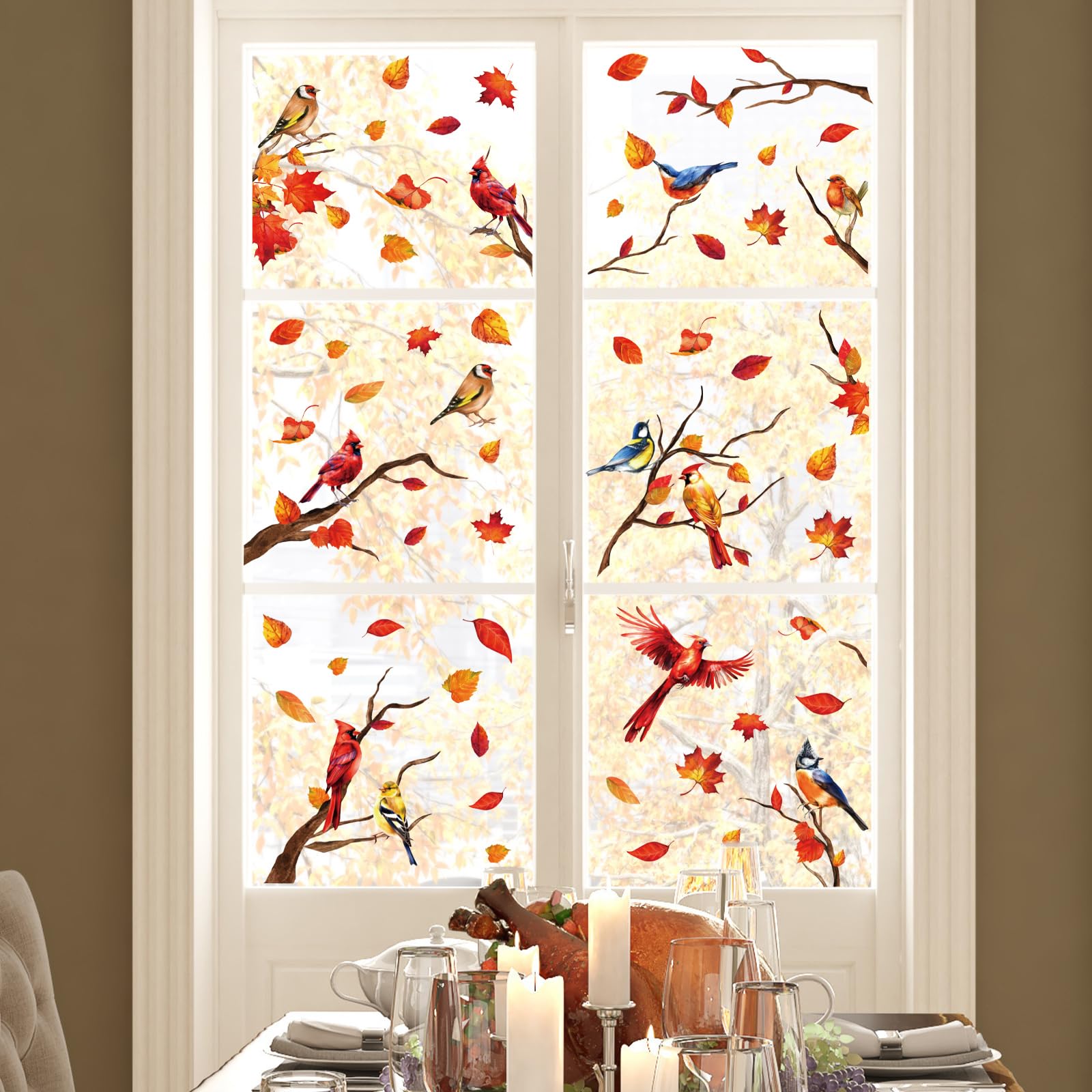 Reliable Material - Our fall cardinal bird window decals are made of good-quality PVC material, safe and durable, waterproof and reusable, without any residue when you peel them off. When you’ gonna to use it, please ensure the window or floor is clean, and wipe the window with a wet towel or just spray some water to paste the decals correctly.