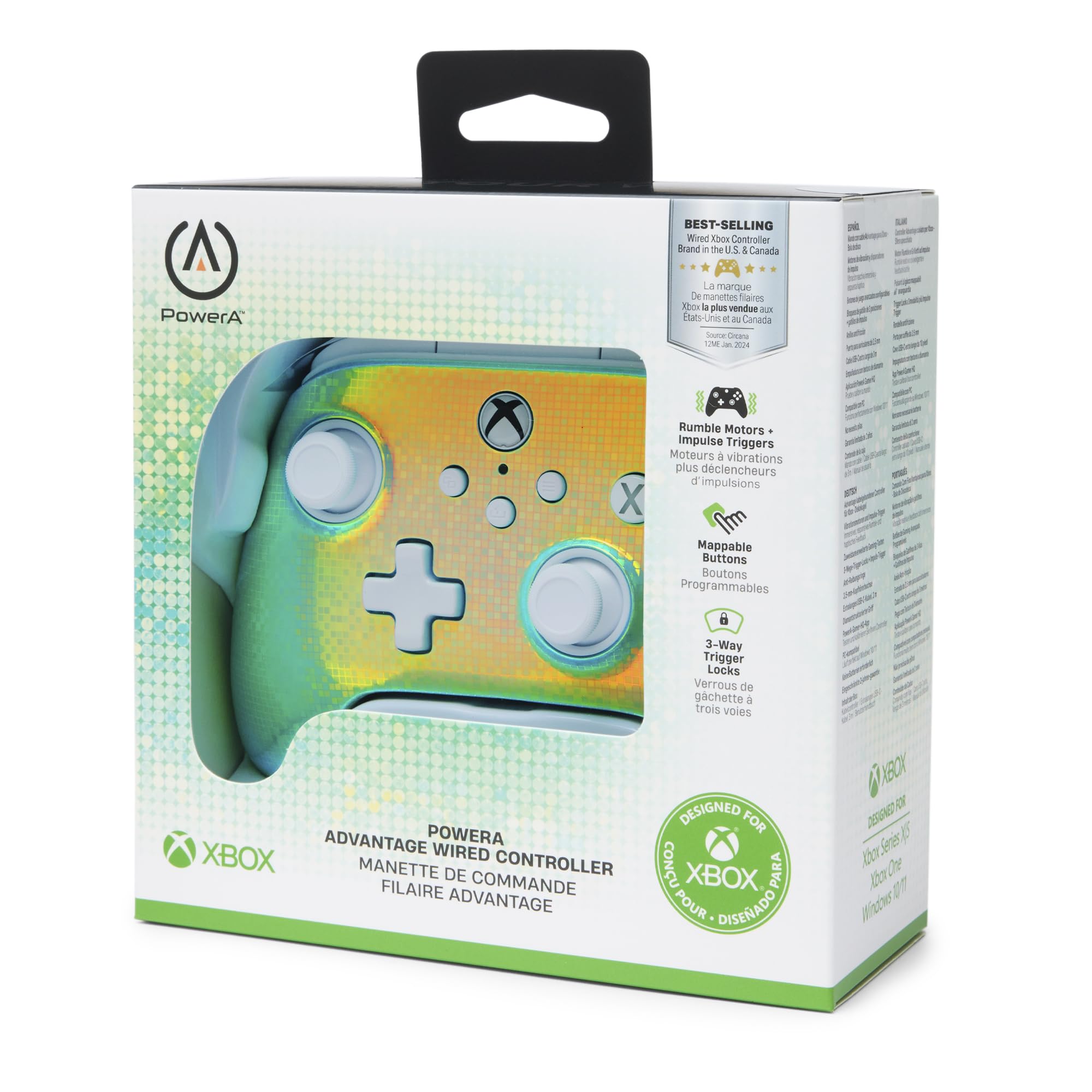 Take your game to new levels with the PowerA Advantage Wired Controller for Xbox Series X|S. Licensed by Xbox, this brilliantly engineered controller features two mappable Advanced Gaming Buttons you can program on-the-fly and 3-Way Trigger Locks for adjusting the trigger travel distance. Plus, all the features you’d expect from an exceptional Xbox controller: Dual Rumble Motors, precision-tuned analog sticks, anti-friction rings for smooth motion and a lightweight ergonomic design. Sit back in comfort with the included extra-long 10ft USB-C cable. With a wired connection, enjoy minimal input-lag and eliminate the need to charge batteries. This controller also works great on Windows 10/11. Play in confidence with a 2-year limited warranty. *Compatibility varies by title.