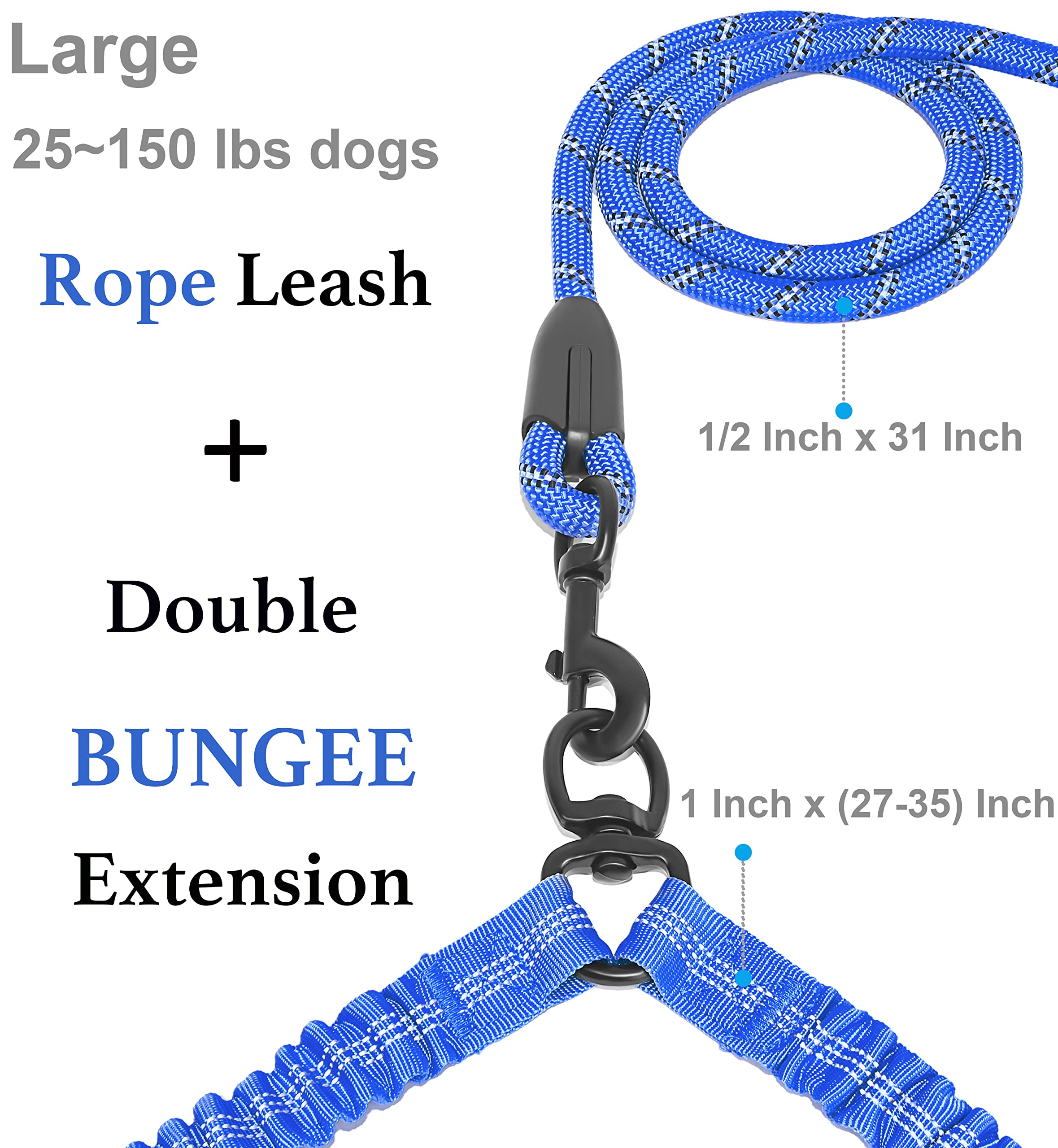 The iYoShop Double Dog Leash Advantage: 31 inch rope leash + double bungee extension (20 inches - 35 inches)