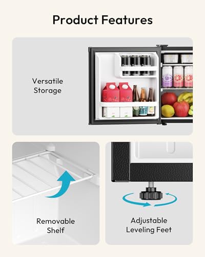 FREEZER & SOFT FREEZE - This mini fridge with freezer is equipped with a refrigeration section (1.5 Cu.ft) and a soft freeze compartment (0.2 Cuft), which can be used to keep vegetables and fruits fresh, as well as for short-term storage of frozen foods such as ice cream. The small fridge is also equipped with a removable wire shelf that can be removed to expand the interior storage space when necessary
