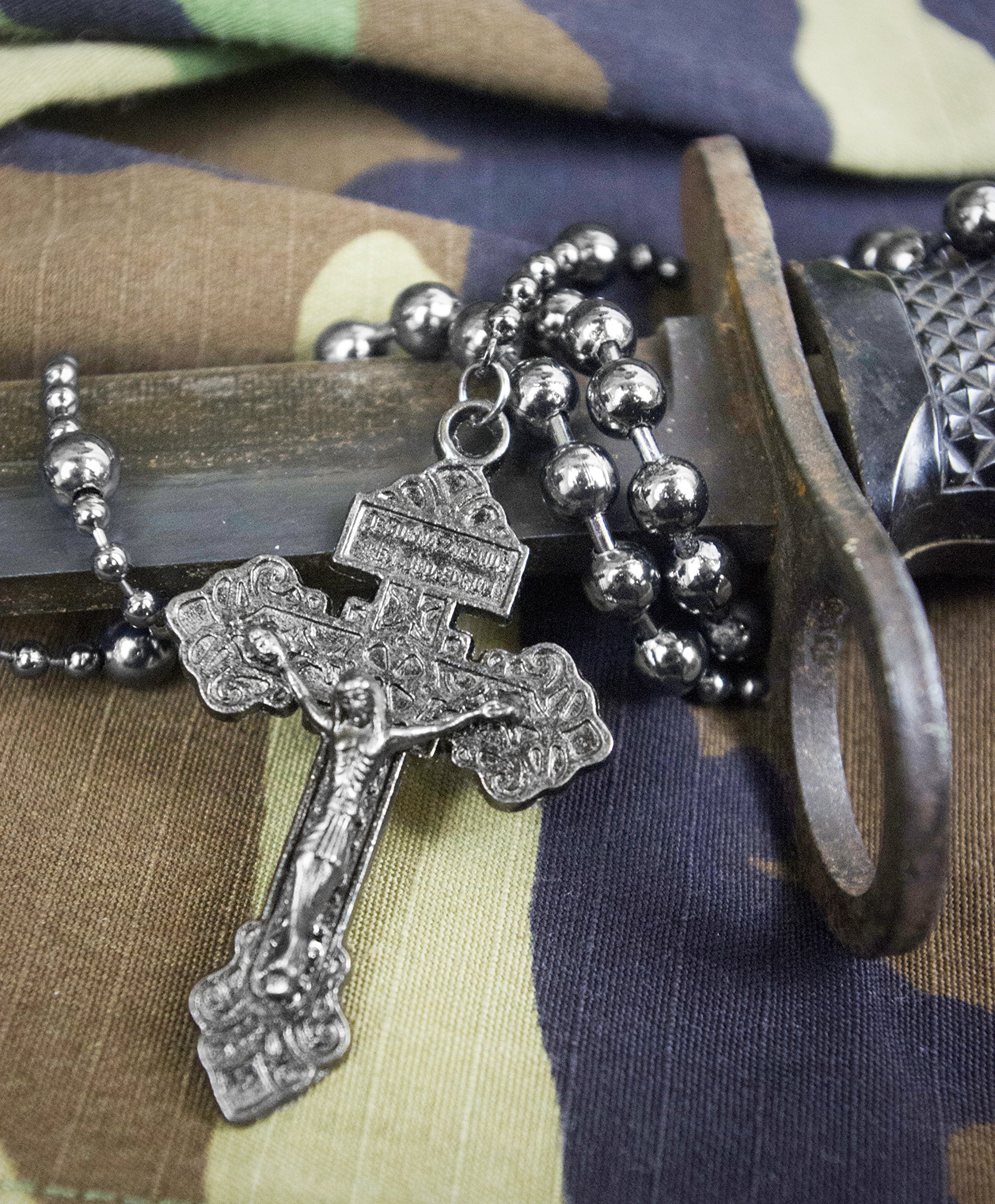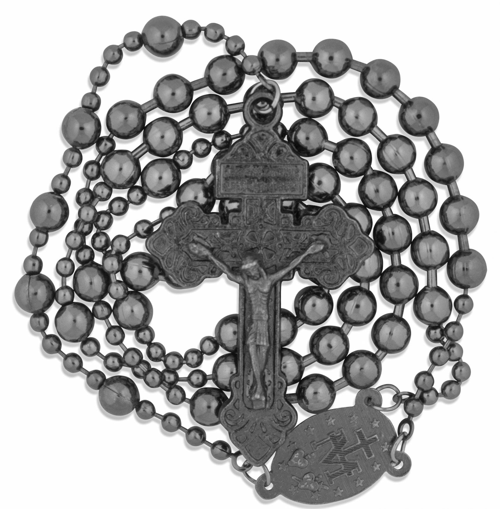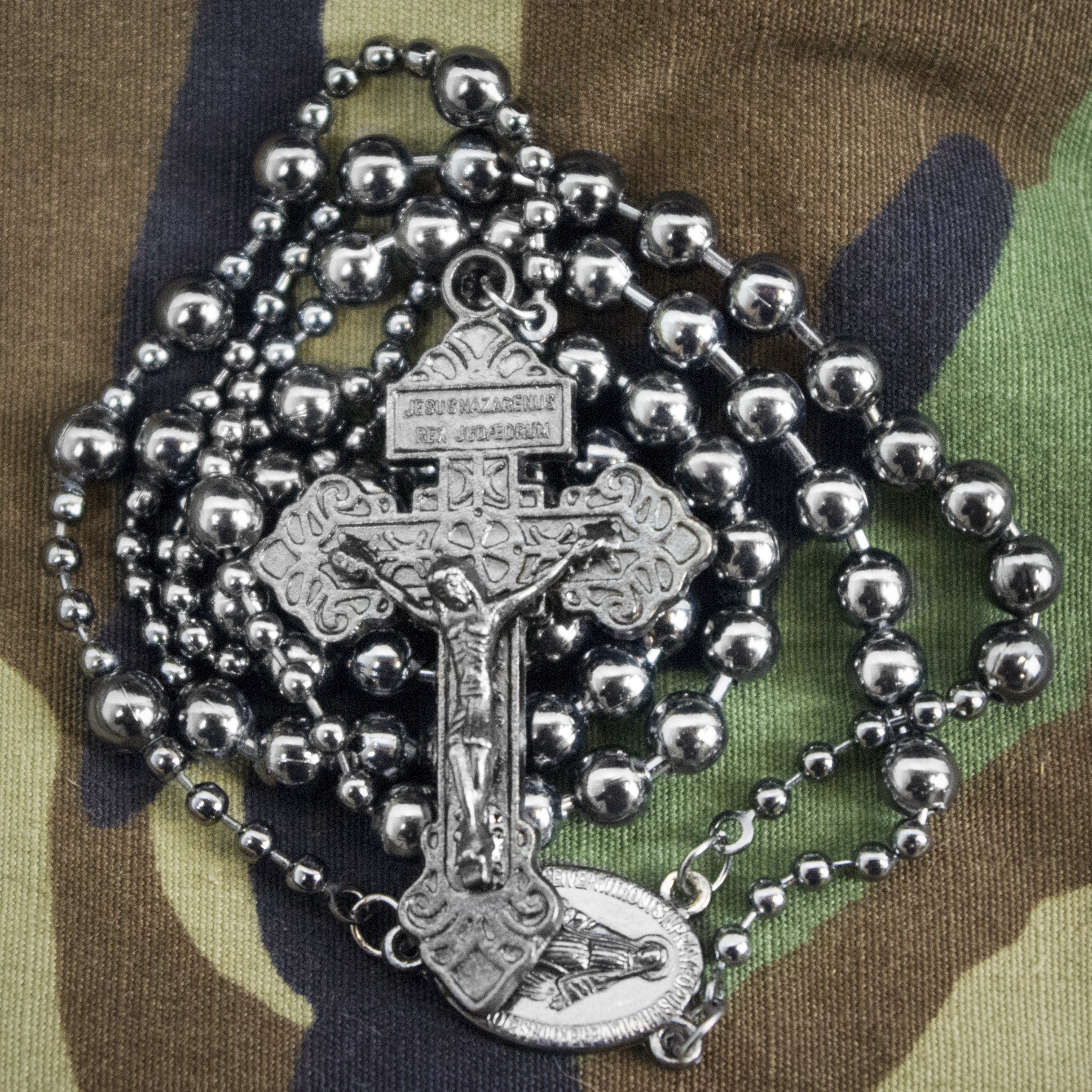Description These durable and manly military rosaries are the perfect gift for men or boys! Each rosary features full metal construction with pull chain cord, making it highly durable. Absolutely will not break under normal prayer use, and is tough enough to last unprotected in your pocket or purse. Available in three classic colors, and features Miraculous Medal center bead with traditional Pardon Crucifix. Also makes a great First Communion or Confirmation gift!