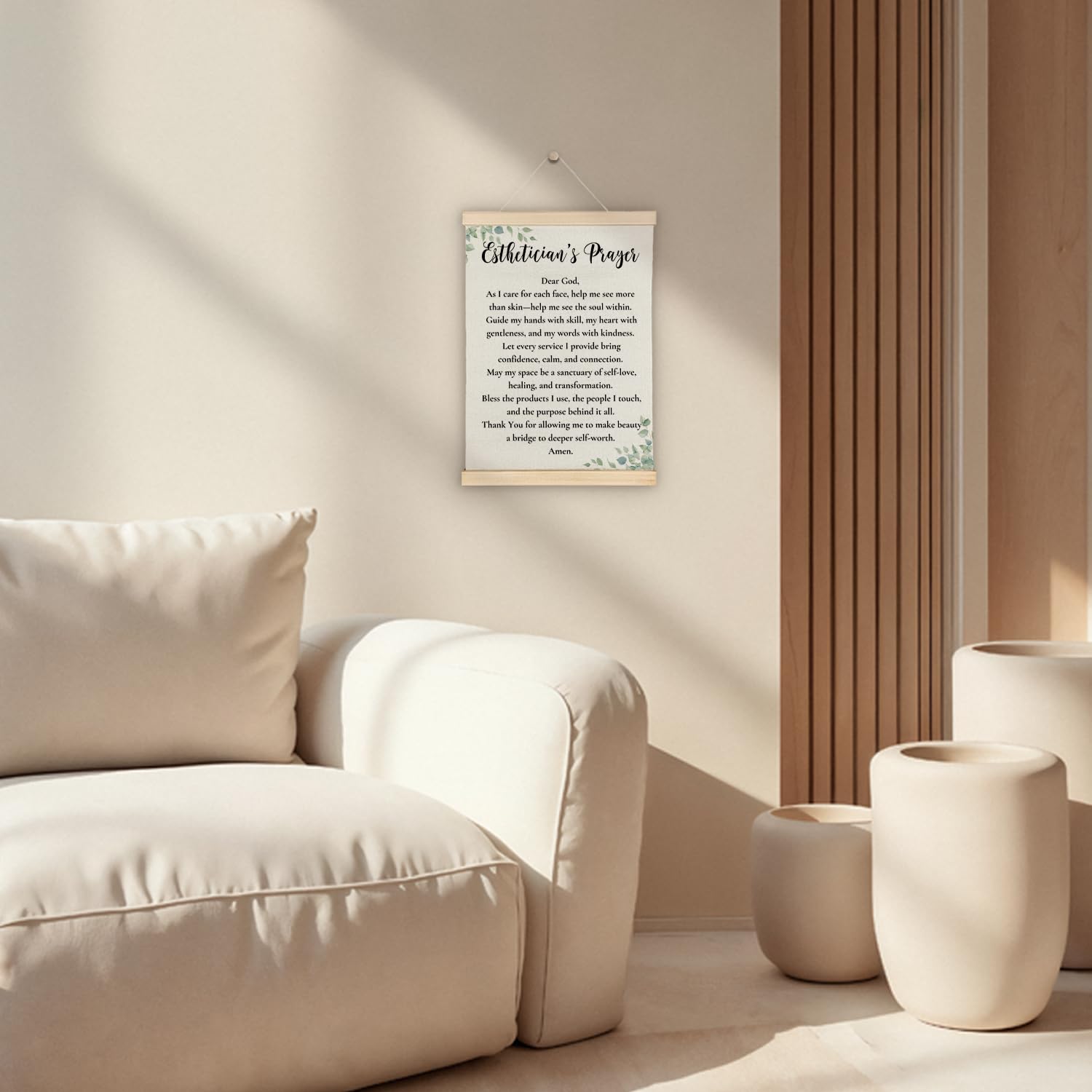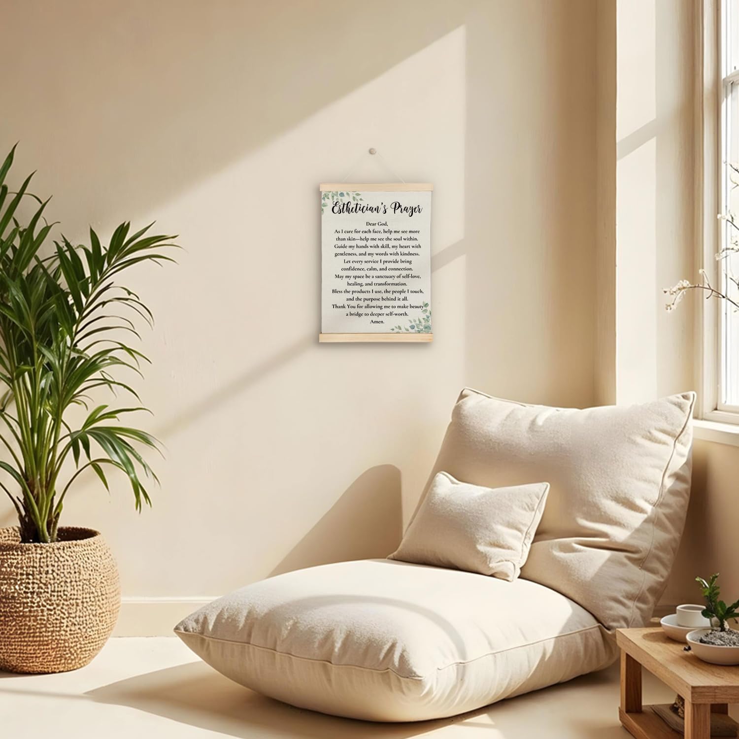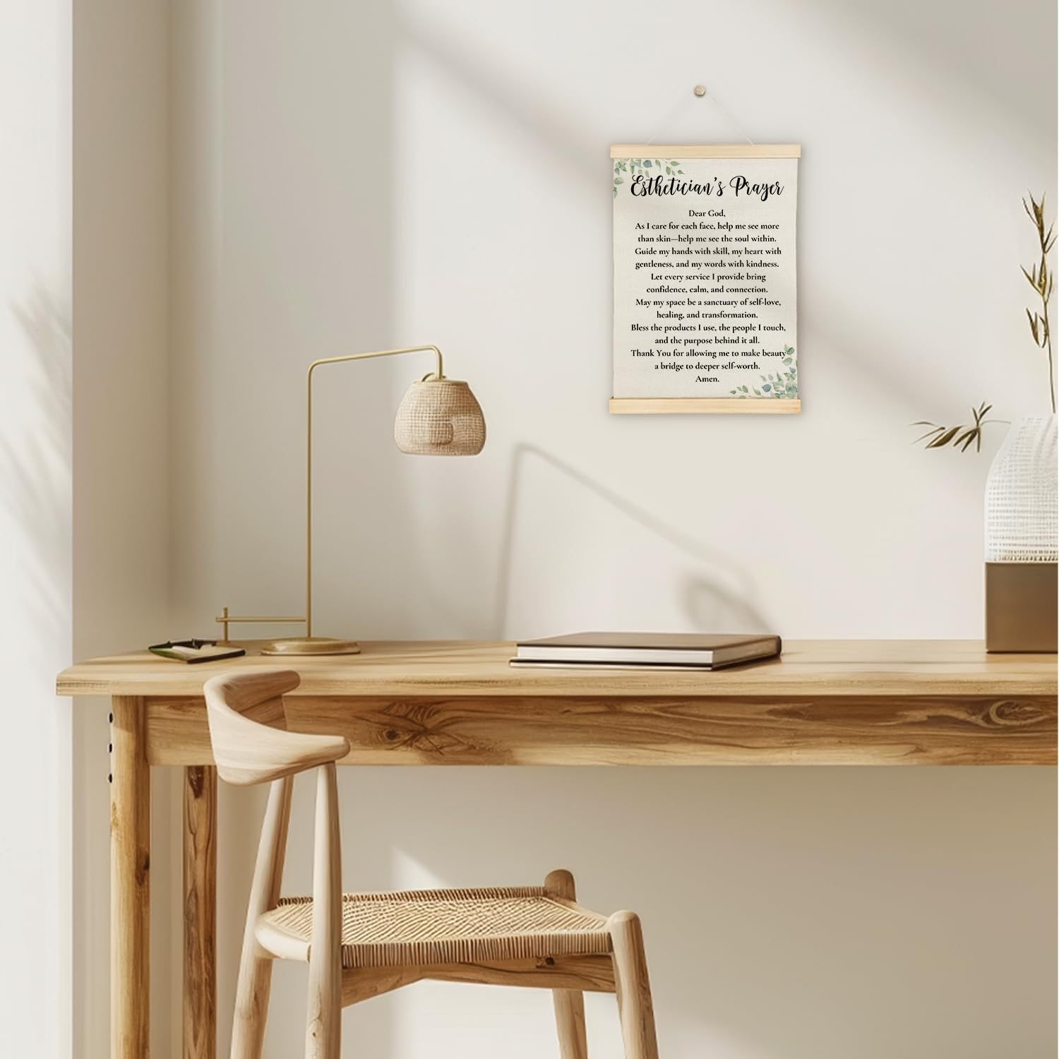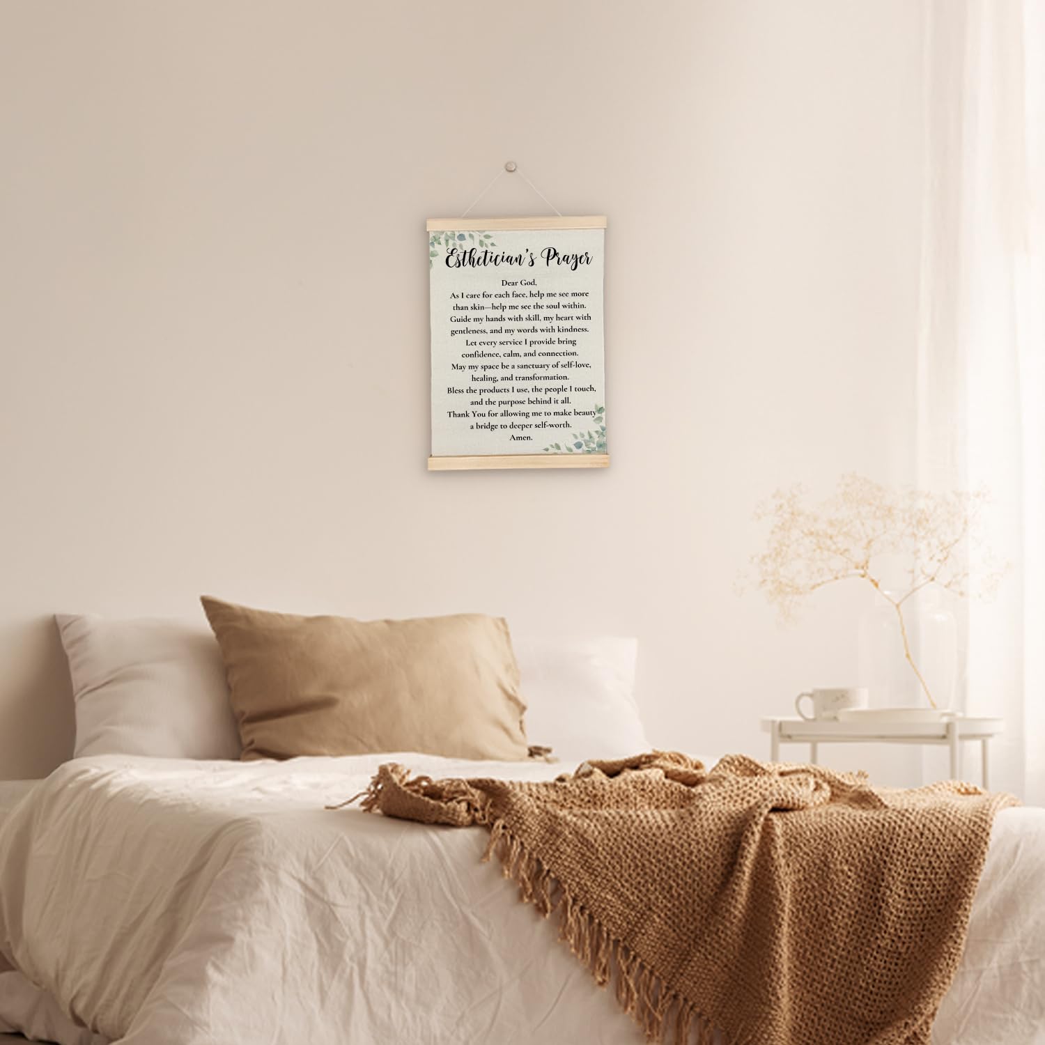 Canvas and Wood Structure: Made with lightweight canvas and finished with smooth wooden bars on both ends. Twine is attached for simple hanging. Measures about 12 x 16 inches and works well in compact or shared spaces.