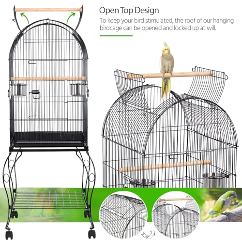 Interactive open top: Our 59-inch birdcage features an easy-to-use play top to keep your bird stimulated and provide both you and your feathery friends with a better interaction way. It includes a perch that keeps the top doors open for the birds to stand on and can be closed to give them a safe enclosed home