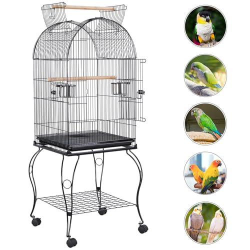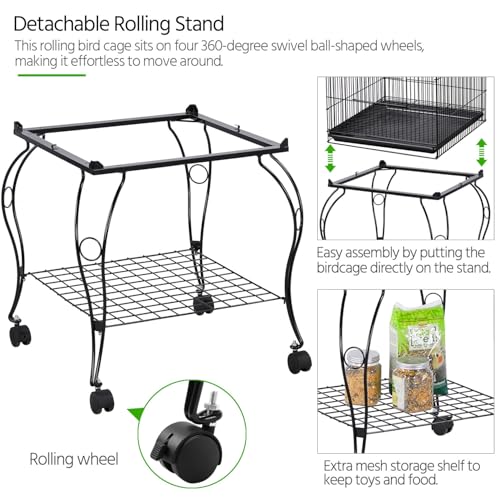 Effortless moving: Founded on a rolling stand, this parrot cage can be rolled to anywhere in your home with ease. Four 360-degree swivel casters (2 with brakes) make our birdcage conveniently moved and locked in place at will