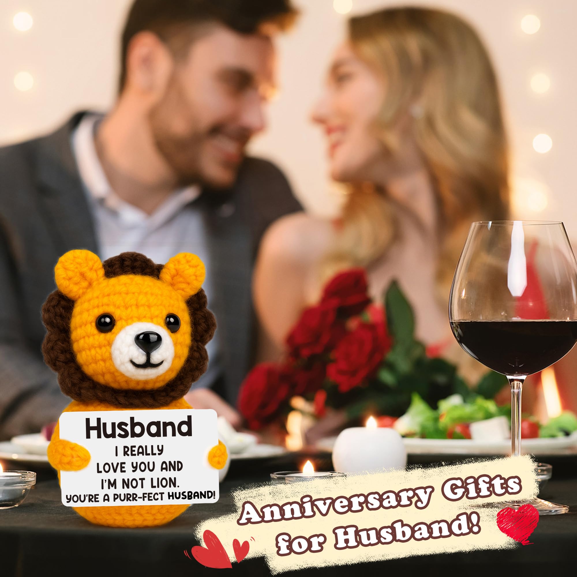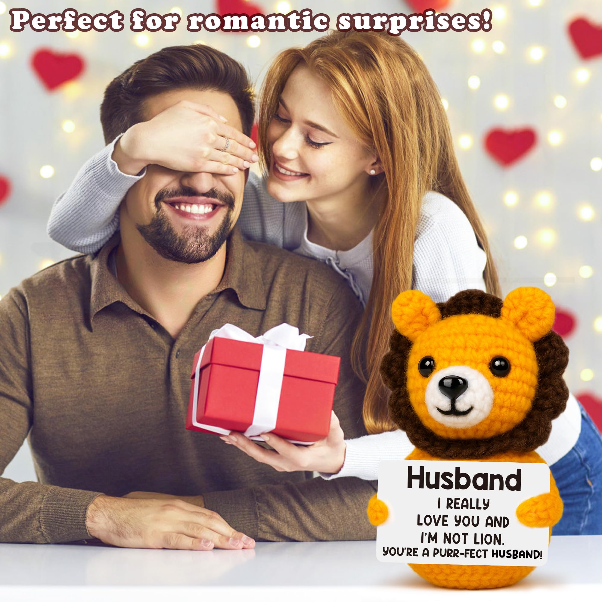Heartfelt & Funny I Love You Gift for Husband - Includes a playful love note that reads: “HUSBAND, I REALLY LOVE YOU AND I'M NOT LION. YOU'RE A PURR-FECT HUSBAND!” This mini lion combines humor and affection, making it one of the most charming romantic gifts for him. Whether you're celebrating your anniversary, planning a husband birthday gift, or surprising him “just because,” this lion delivers a smile and a warm heart.