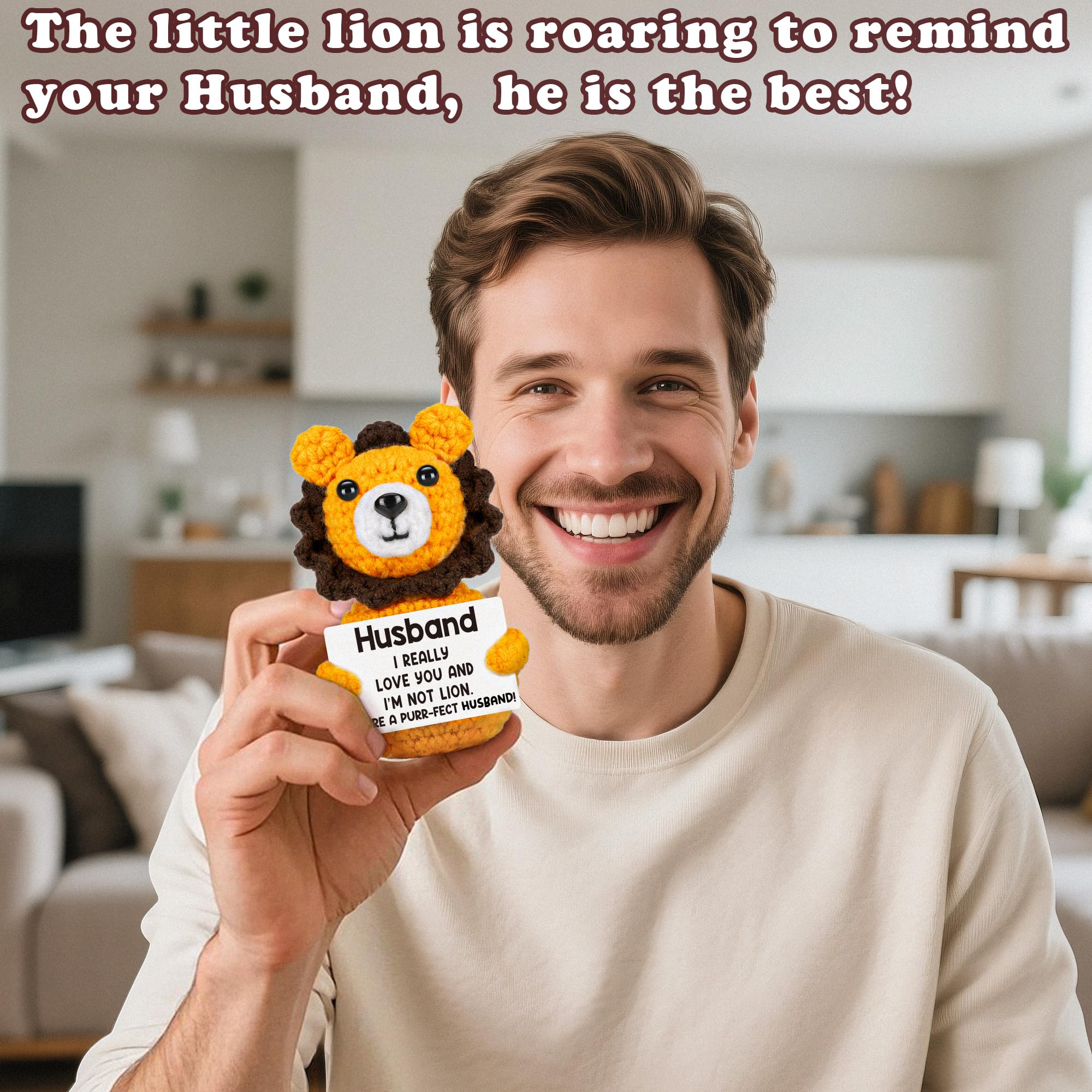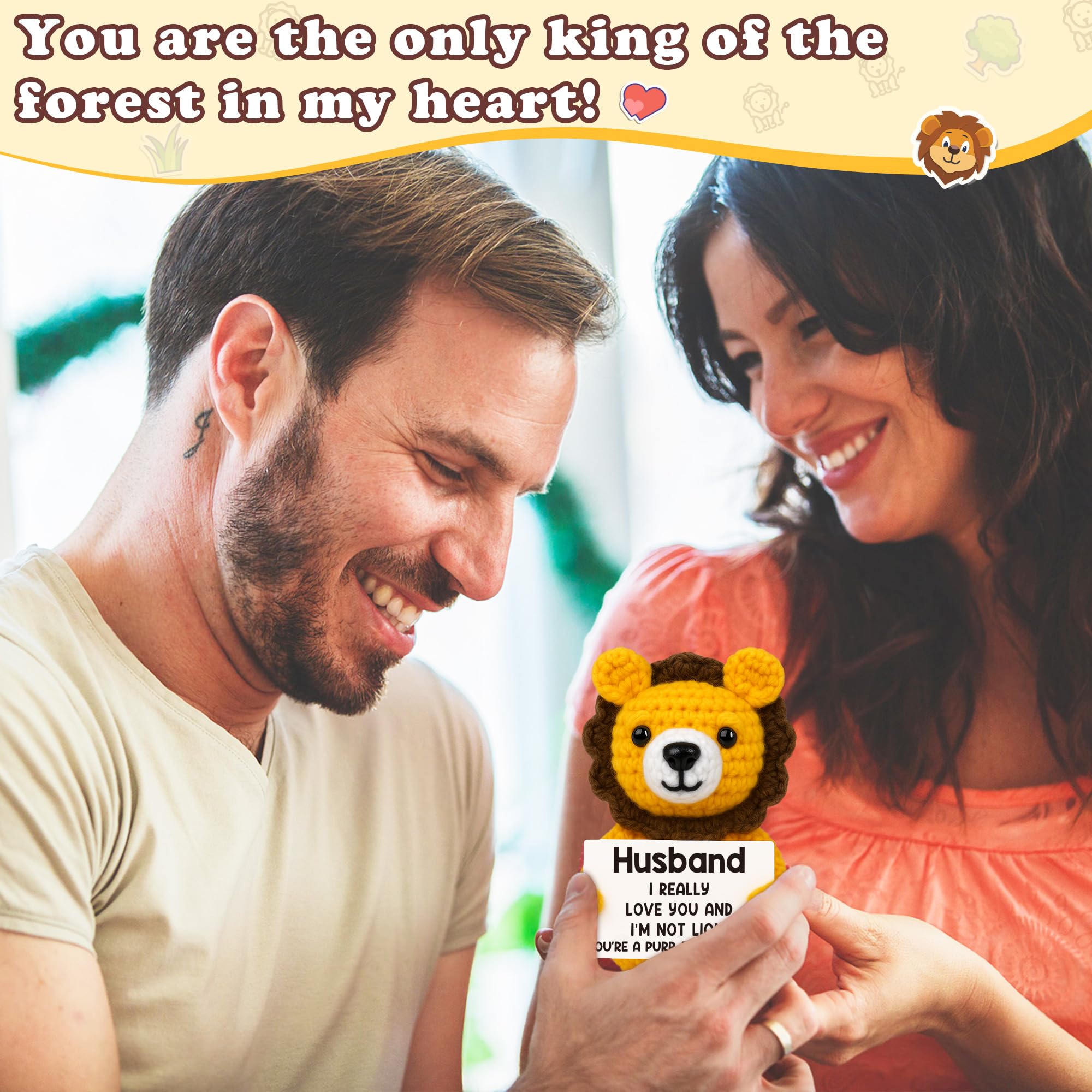 Adorable Symbol of Loyalty and Love - This crochet lion represents your loyalty, warmth, and everyday affection. Its sweet pun and gentle smile are the perfect reminder of how much he means to you. Ideal for long-distance couples, apology gifts, or simply as a sentimental gift for husband that he’ll keep on his desk or shelf. A thoughtful token for those searching for I love you gifts for him or emotional keepsakes.
