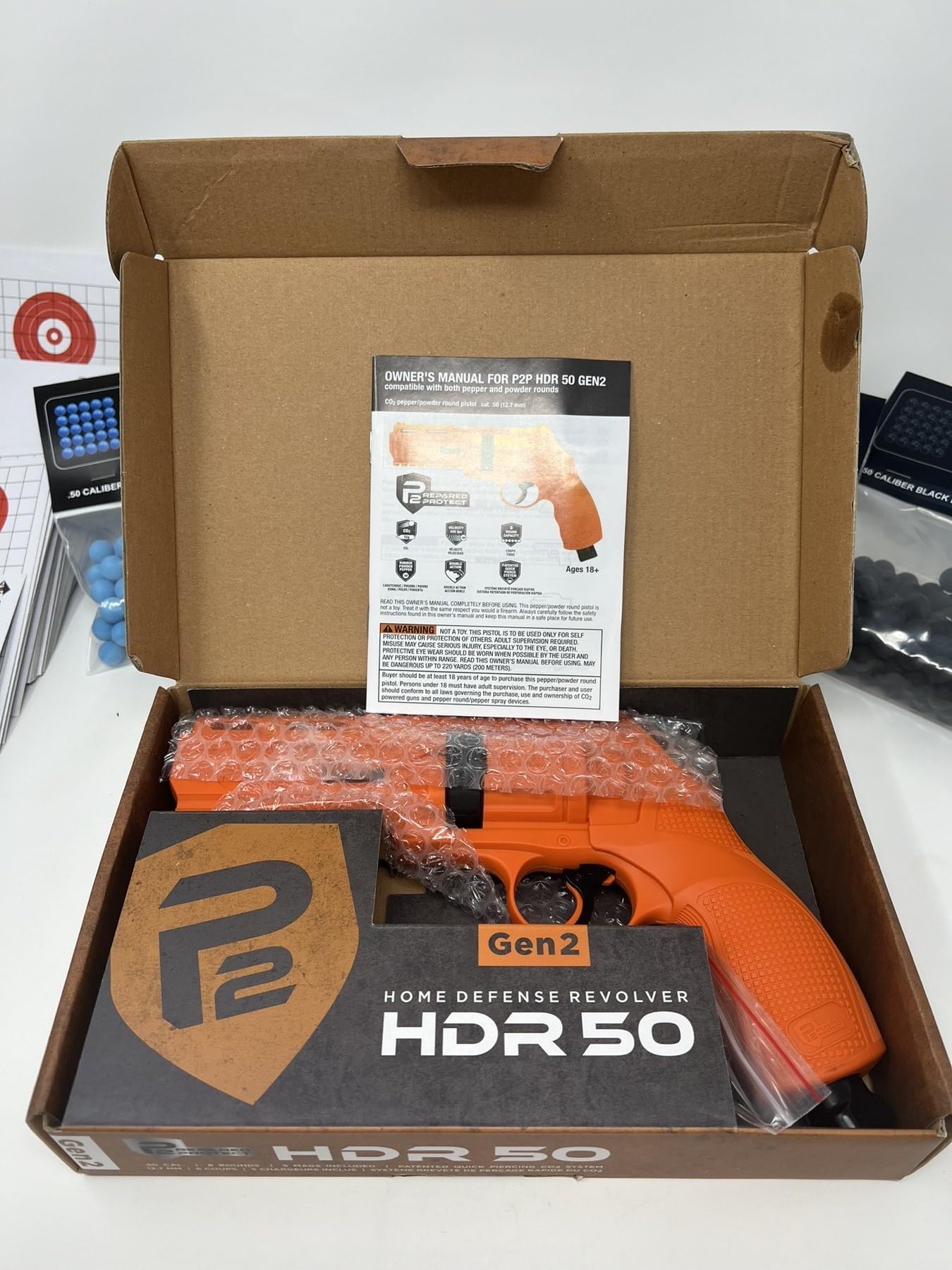 In The Box: 1x Paintball Pistol; 5x 6-Rounds Mag .50 Cal; 1x Pack of 5x12 g CO2 Tanks; 1x Pack of 100x Black Rubber Balls
