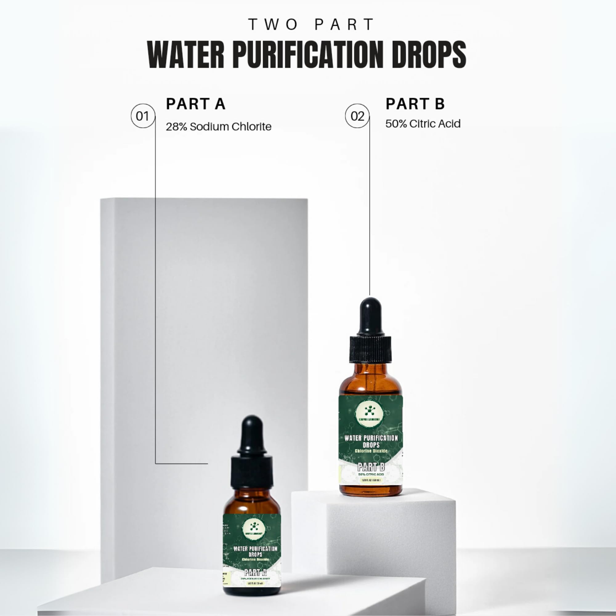 EFFICIENT PURIFICATION PROCESS: Achieve rapid and straightforward water purification. Simply mix the specified drops from both parts as per the instructions, let the solution work, and enjoy clean, safe water quickly.