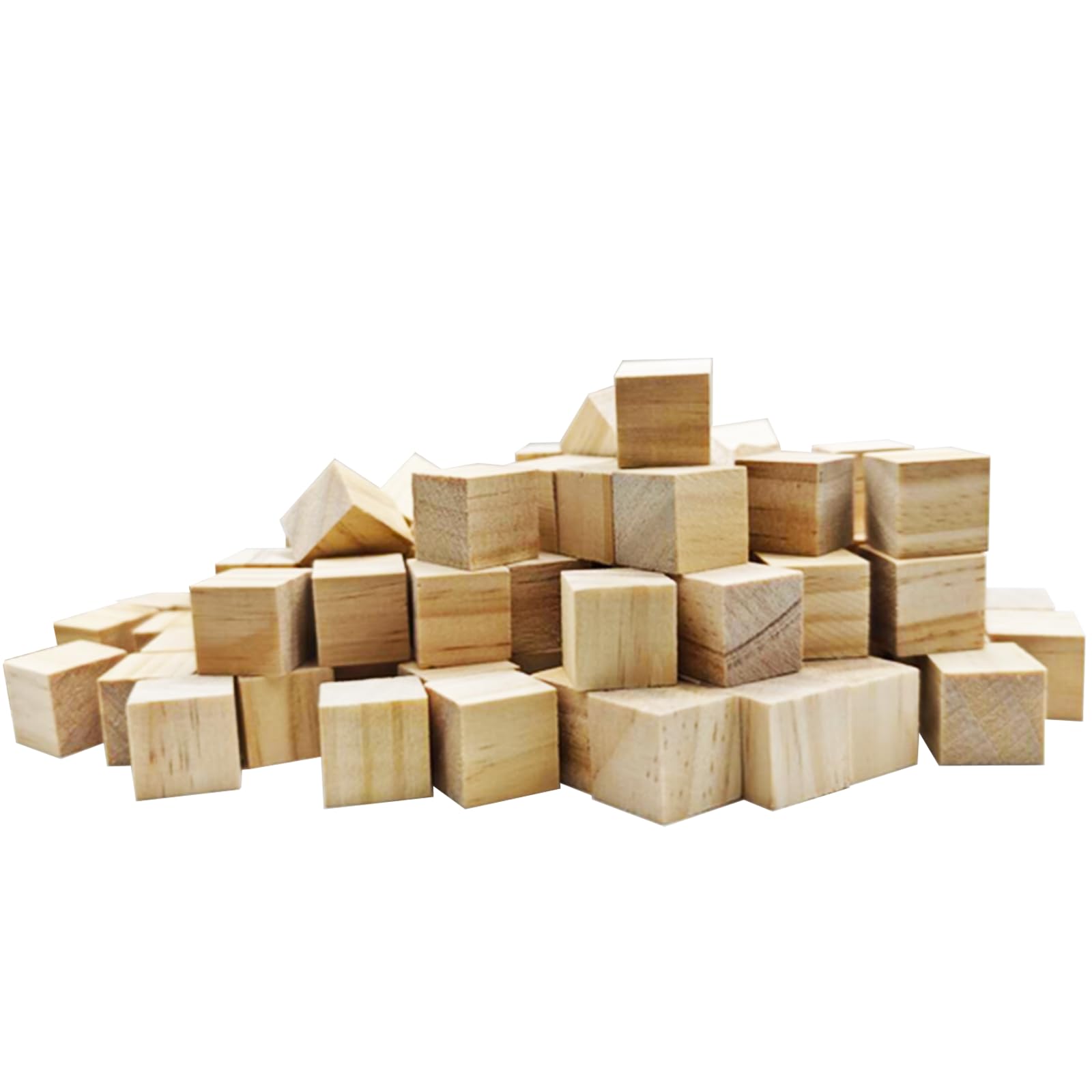 SET OF 100 UNFINISHED BLOCKS WOOD CUBES - 3/4 x 3/4 x 3/4 inch (LxWxH) natural solid wood square blocks wood cube.