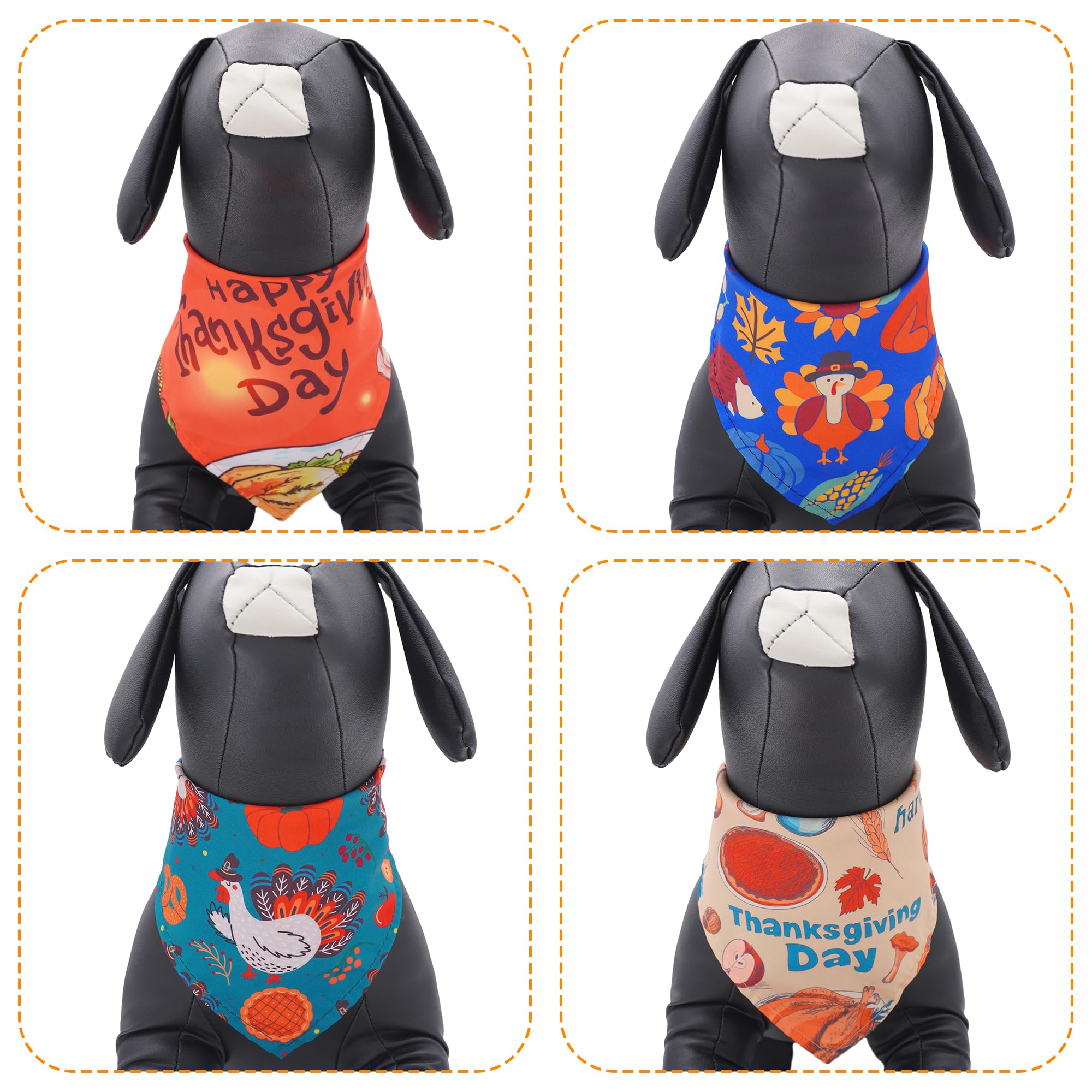 Thanksgiving Dog Bandanas Material: The triangle bandanas for dogs are made of soft breathable polyester, fine workmanship,stitching edge ,clear printing, these dog bandanas feature sturdy stitched edges stitching hemming selvedge sewing and maintain their shape during hand or machine washing,keep your pet relaxed and comfortable