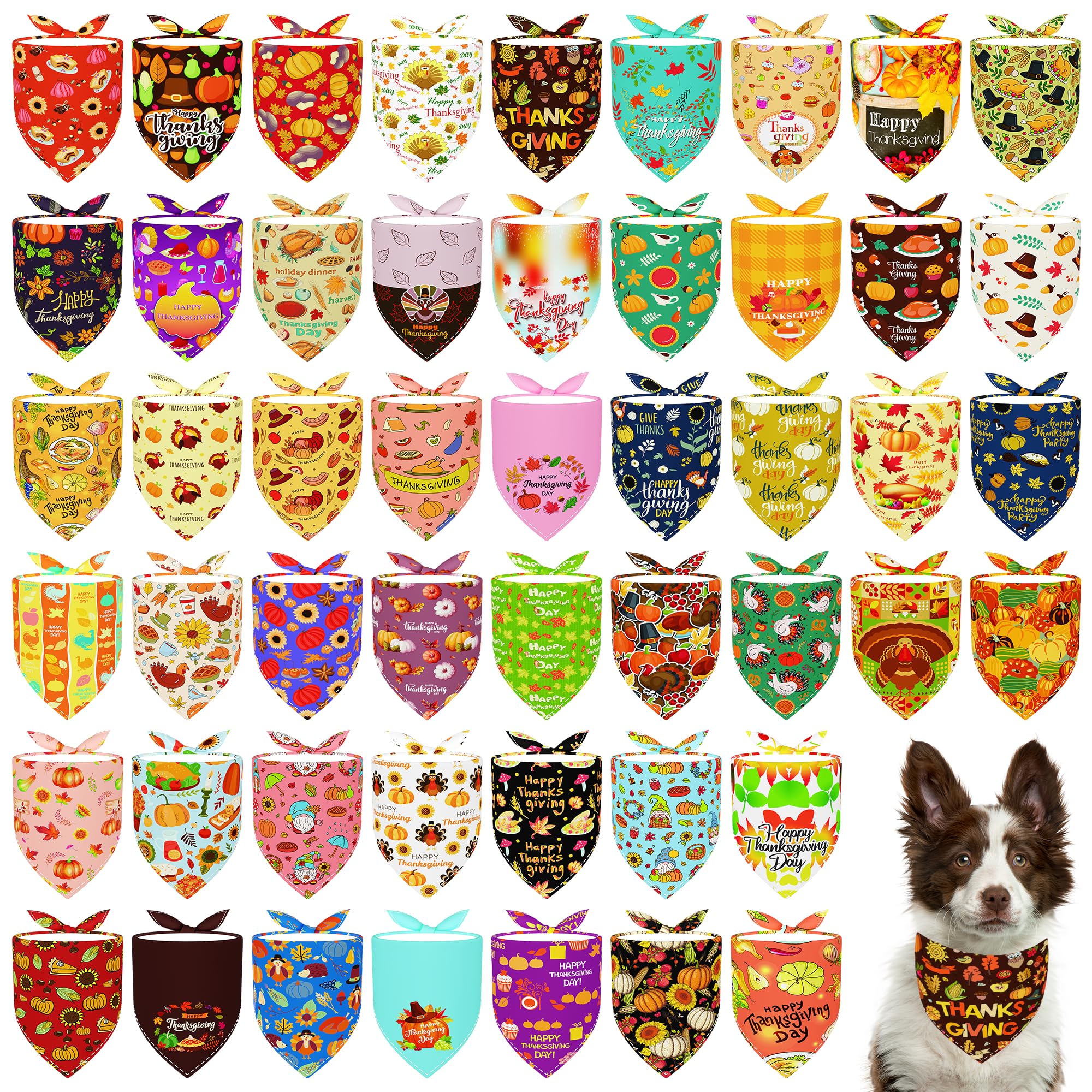 Dog Bandanas Thankgiving Bulk Package: You will receive 50pcs thanksgiving dog bandanas in 50 different pattern,the sufficient quantity and various colors can meet your pet decoration needs and daily replacement, making your pets look more adorable