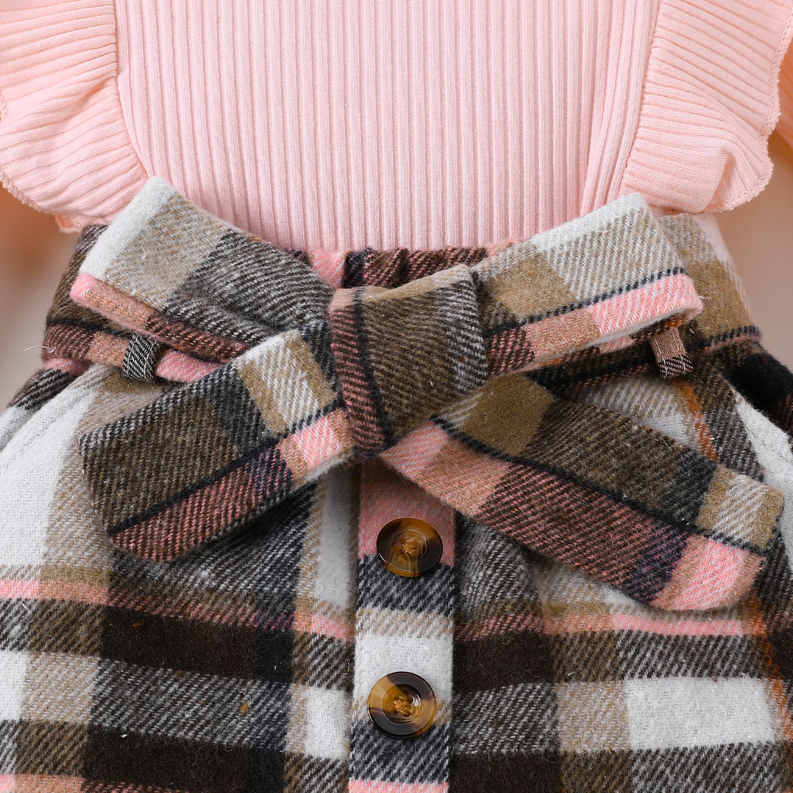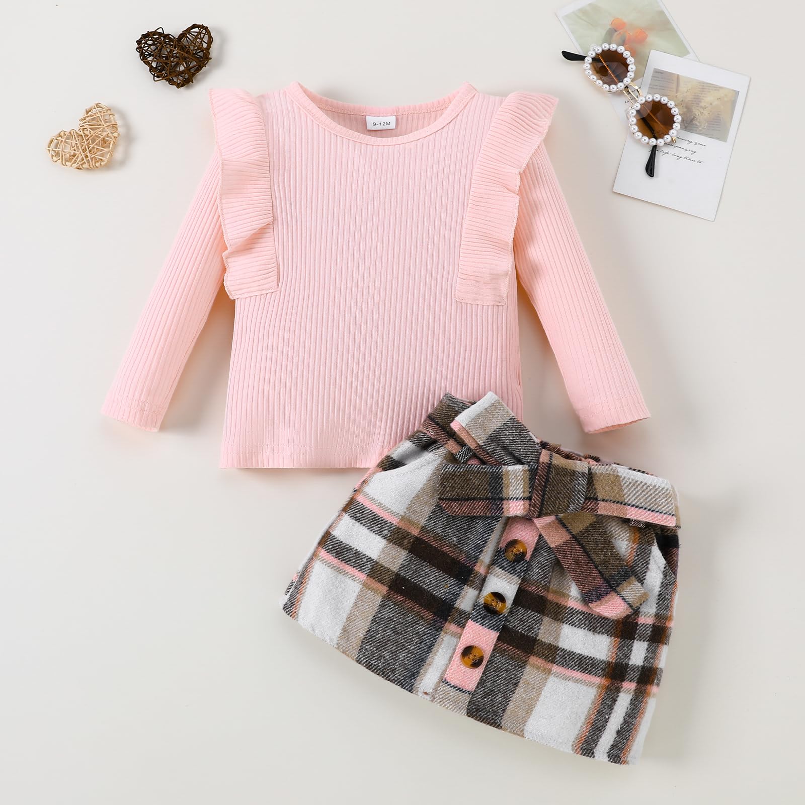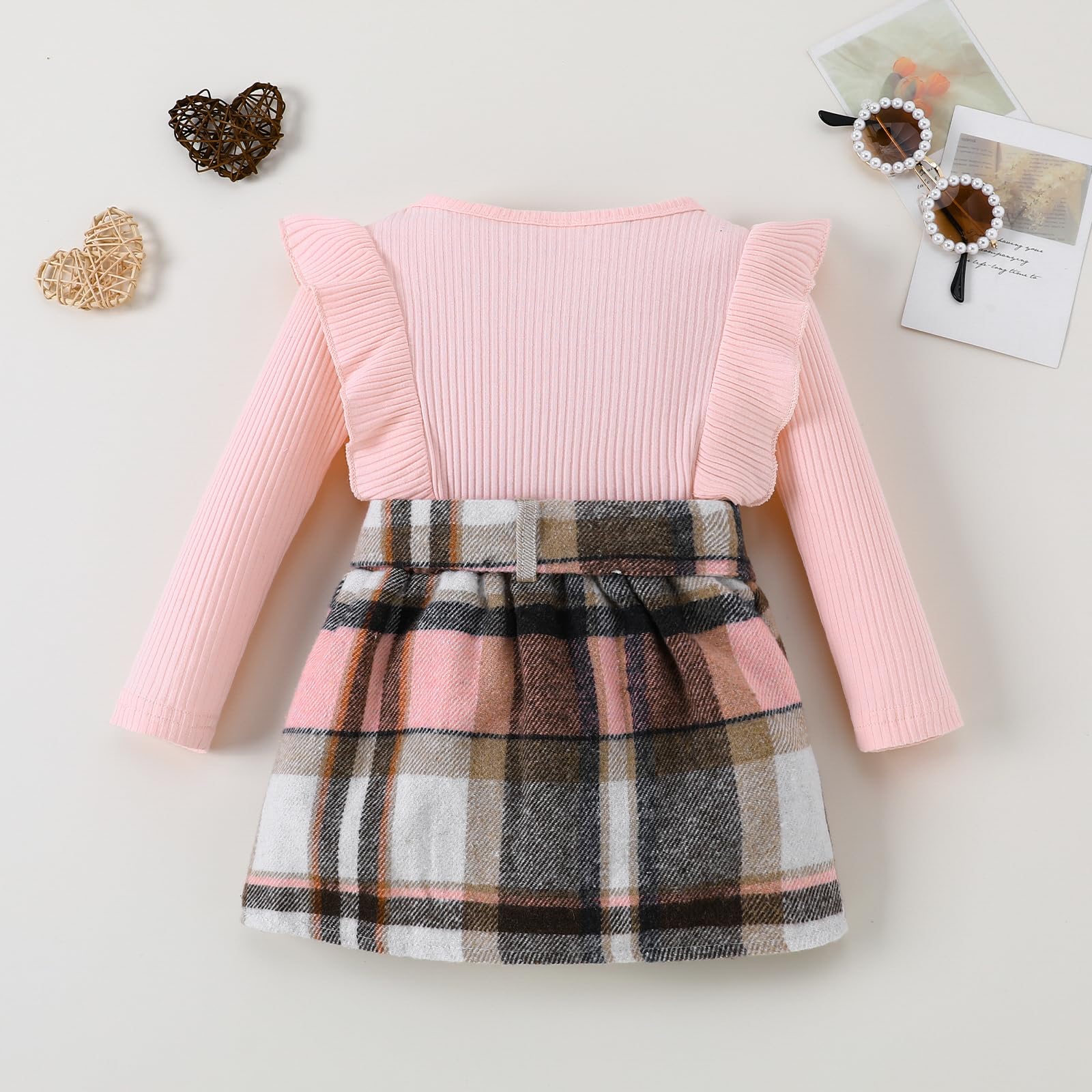Feature: Baby girl fall outfits, long sleeve knitted sweatshirt top , crewneck, comfy ribbed shirt and tweed red plaid skirt set, adjustable belt skirt, lovely and stylish, Suitable for your little princess in autumn winter and Christmas wear.