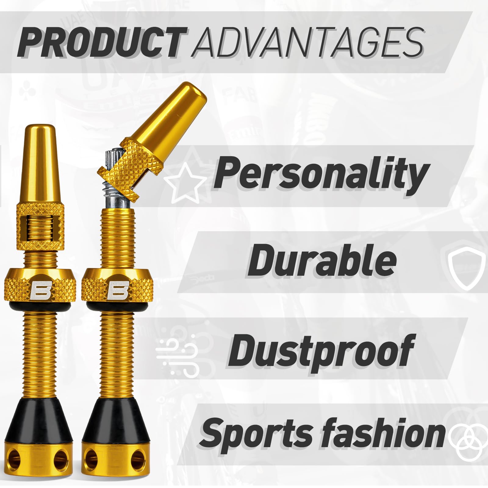 Universal Design: Suitable for most MTB and ROAD BIKE rims. There are 12 different color options, allowing you to mix and match according to your preferences. Package Included: Presta Valve Stem (2 Pack), Valve Core Remover (2 Pack)
