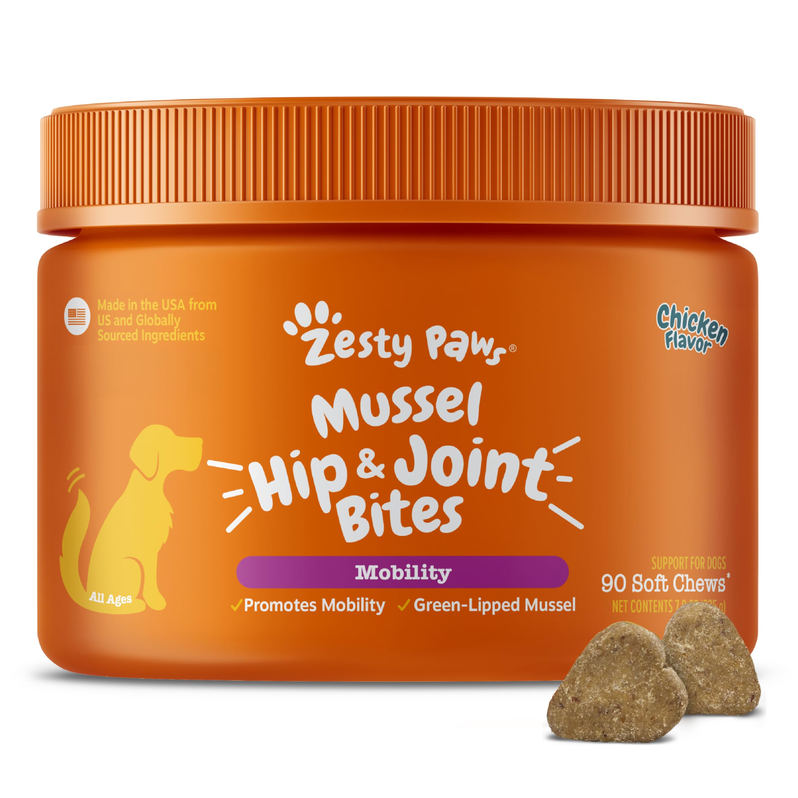 Mussels Sourced From New Zealand - Zesty Paws Green-Lipped Mussel Bites are chewables that feature cold processed New Zealand Green Lipped Mussel.