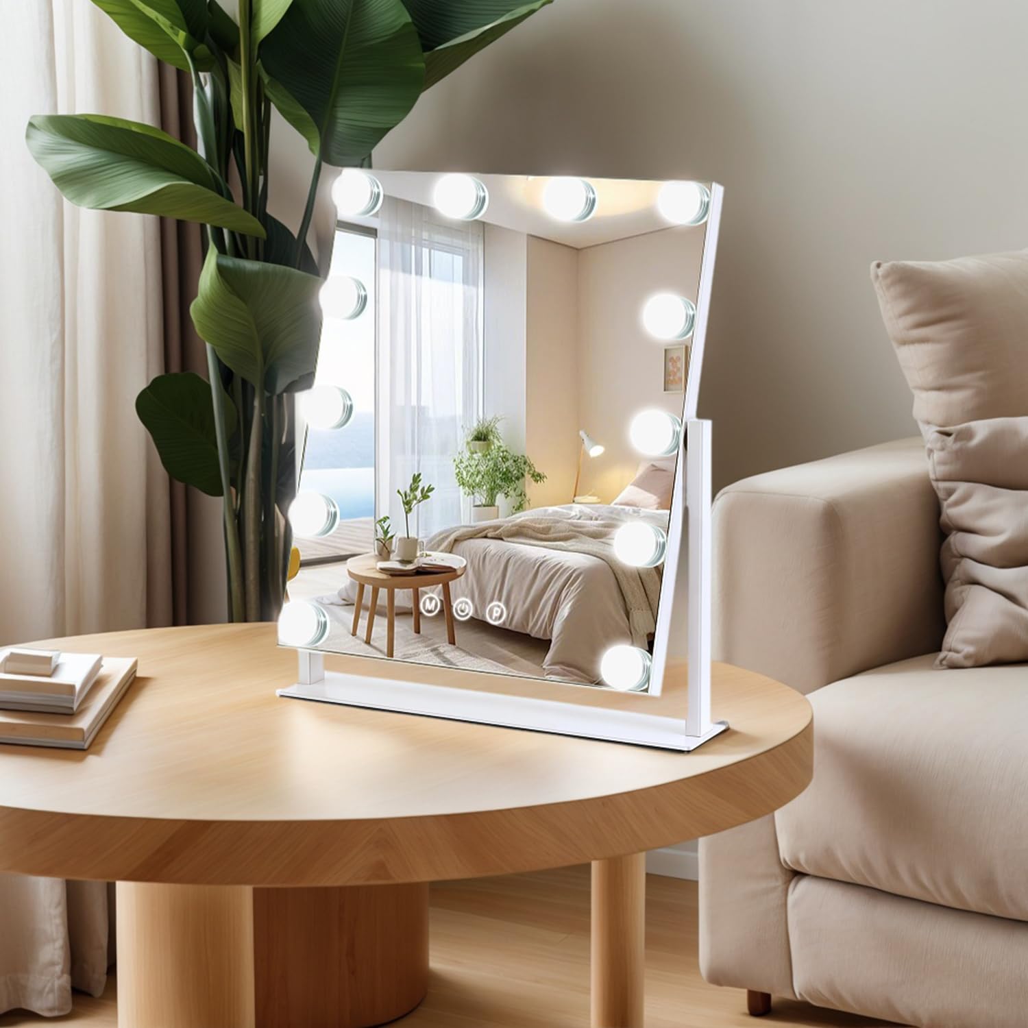 【Perfect Size & Sleek Design】Measuring 13" x 11", this tabletop vanity mirror with lights offers a clear view of your face, neck and shoulders. Its space-saving design fits perfectly on any dresser or vanity table