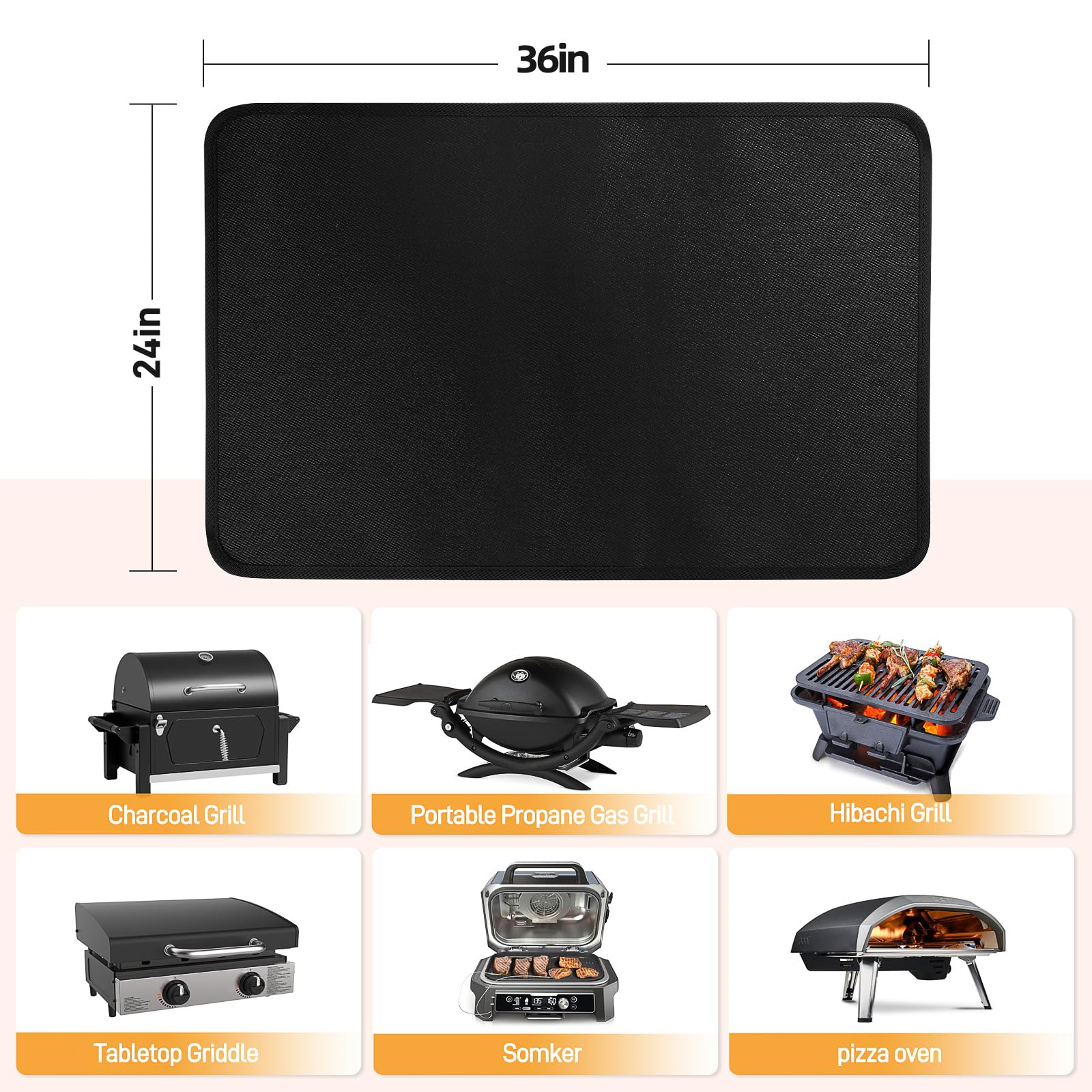 【The Best Choice for Your Tabletop Grill】The table grill mat is 24 x 36inch, 0.6mm thickness, which is suitable for your 24 x 36inch outdoor grill table. You can use it for most tabletop grills, tabletop charcoal grill, small charcoal grills, portable grills, pizza ovens, and other small outdoor grills.